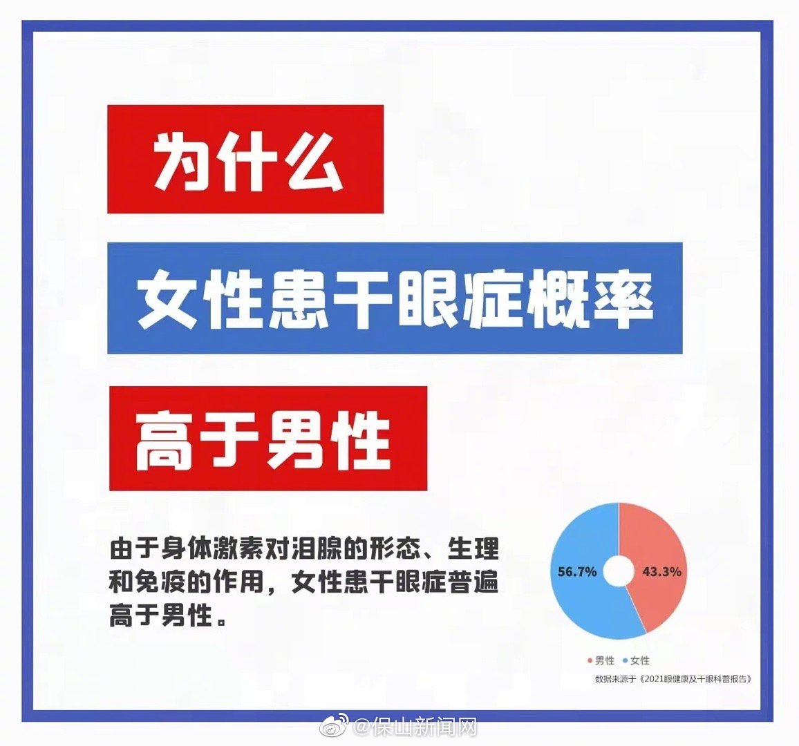 据流行病学调查显示,全球干眼的发病率达8%-34%,干眼已成为全球最常见的眼表疾病,亚洲干眼发病率居全球前列,其中中国发病率更是到达了21%-30%,女性患干眼症概率高于男性。