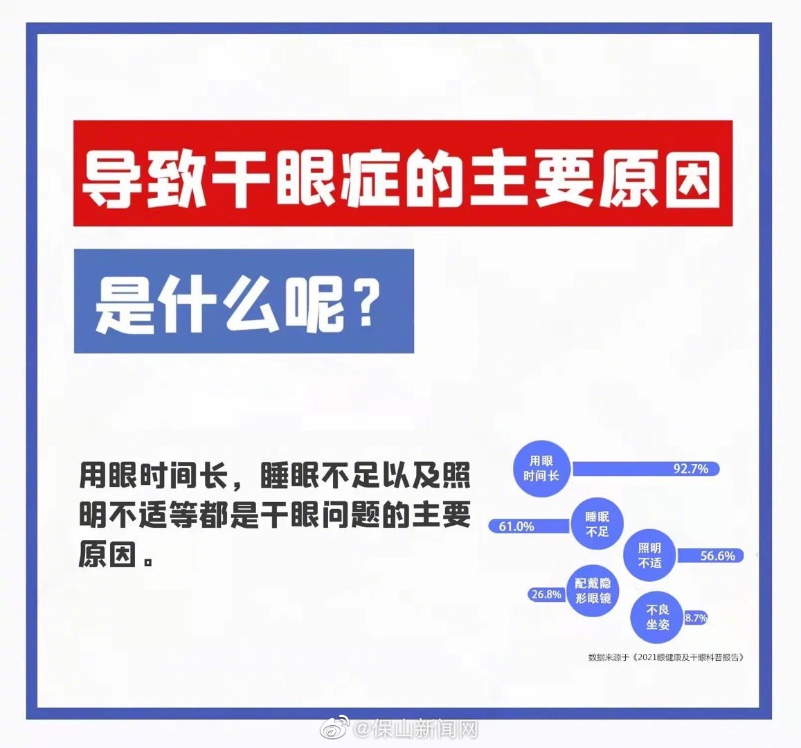 ②用眼时间长、睡眠不足及照明不适等都成为干眼问题的主要原因;