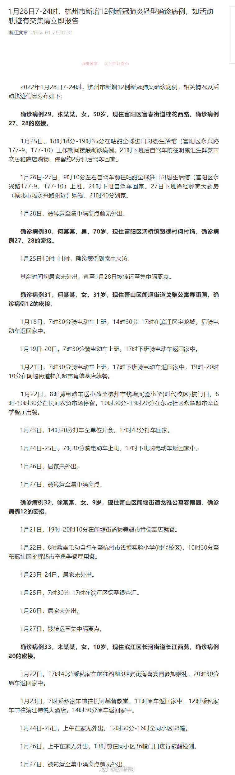 杭州疫情2022年1月28日7-24时,杭州市新增12例新冠肺炎确诊病例,相关情况及活动轨迹信息公布如下↓