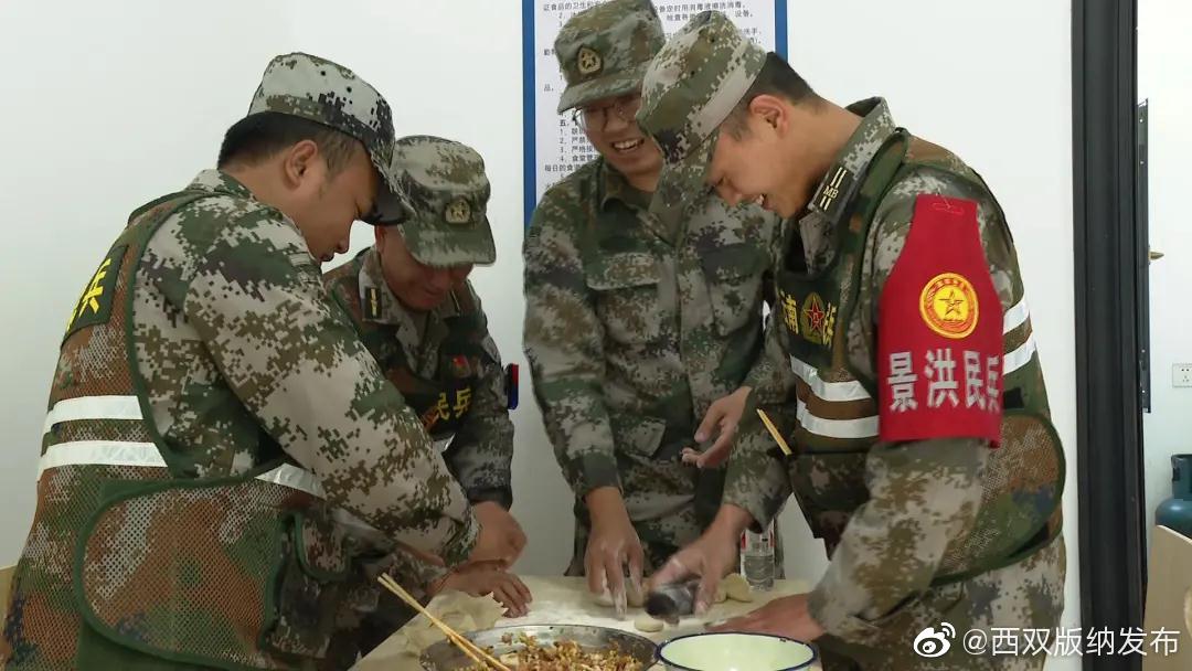 在勐龙镇240口岸边境沿线的抵边联防所,休息备勤的值守人员正在厨房里忙活着。洗菜剁馅,揉面包饺子、包汤圆......大家围在一起有说有笑,准备着这顿简单而特别的元宵饭。