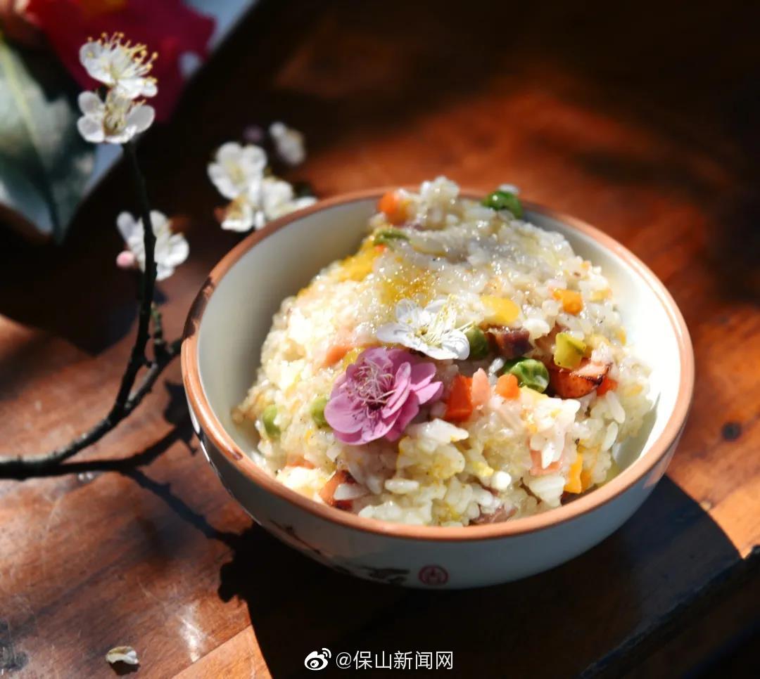 梅花盛宴秀色可餐、别具风味,一口便让人回味无穷。五彩糯米饭,Q弹香甜、细腻可口;黄金南瓜饼,金黄酥脆、芳香四溢;梅菜扣肉 ,入口即化、酸甜纯正;乌梅炖土鸡,汤汁黏稠,油而不腻;酸梅蘸水搭配手工压榨桥米线,滋溜一口,劲道嫩滑,开脾健胃……搭配呈琥珀色的青梅酒,唇齿间余香荡漾留存。