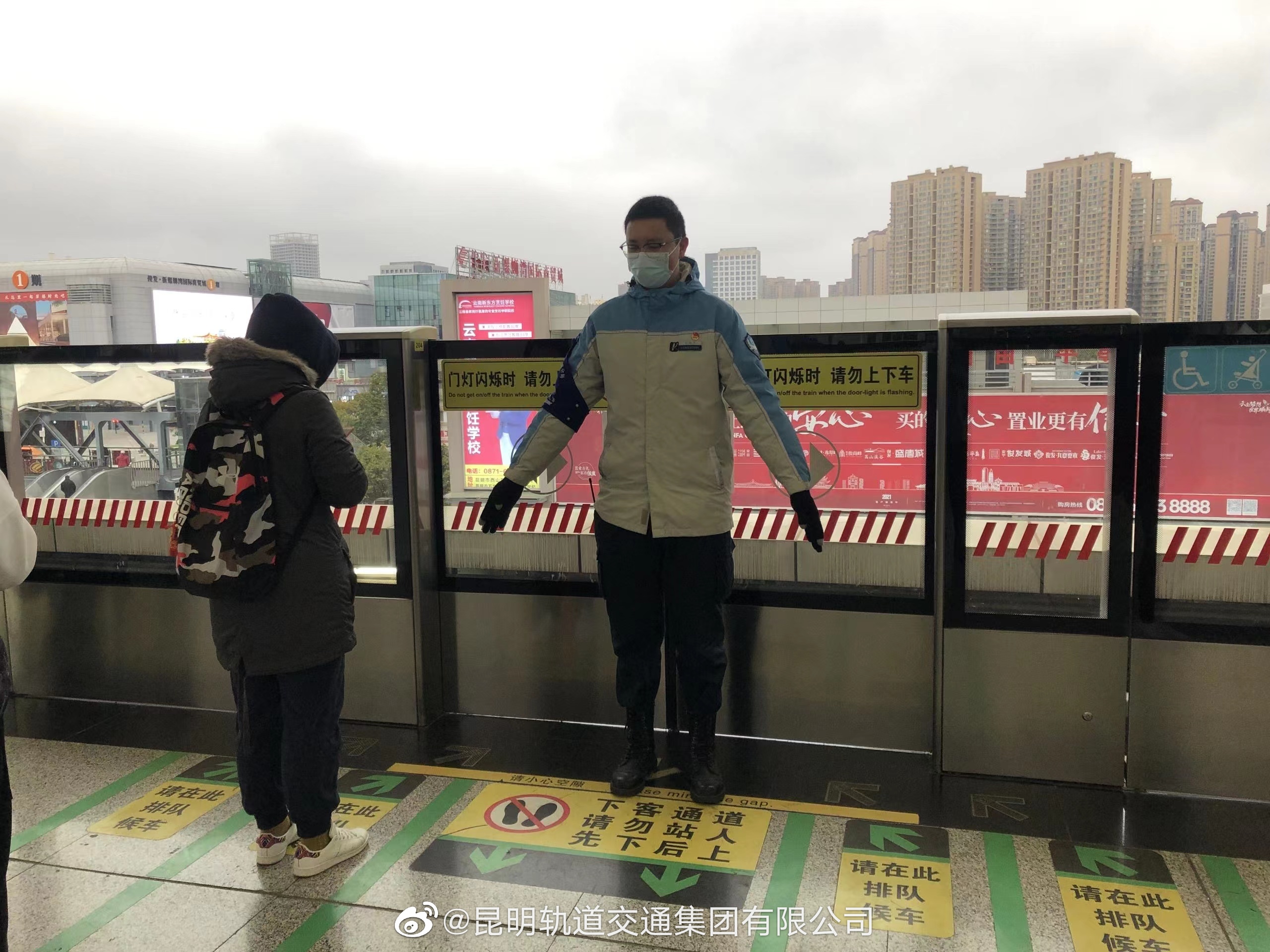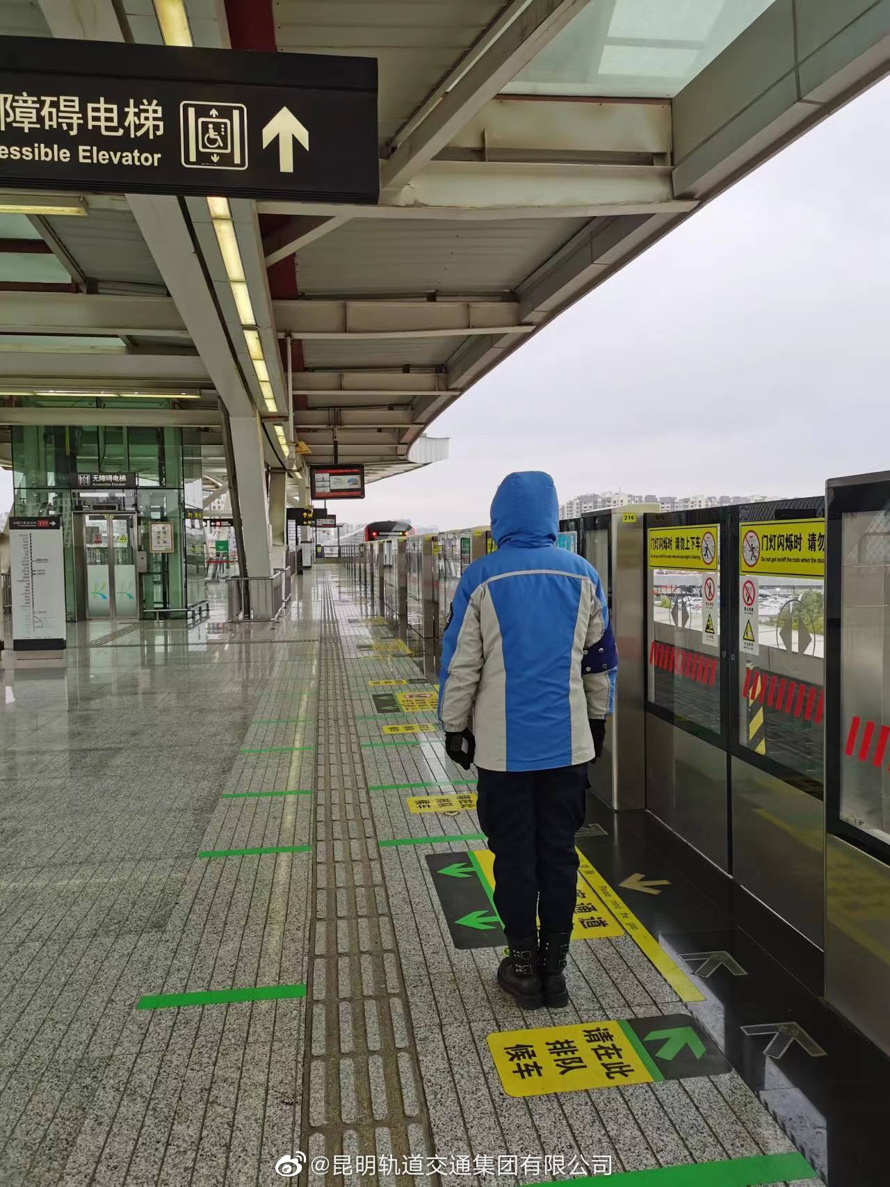 20日上午,最低气温只有2℃,人体感知温-2℃。昆明还下起了小雪,乘坐地铁时注意地下湿滑,乘坐扶梯时站稳扶好,不要在扶梯上走动。需要帮助请找车站工作人员。