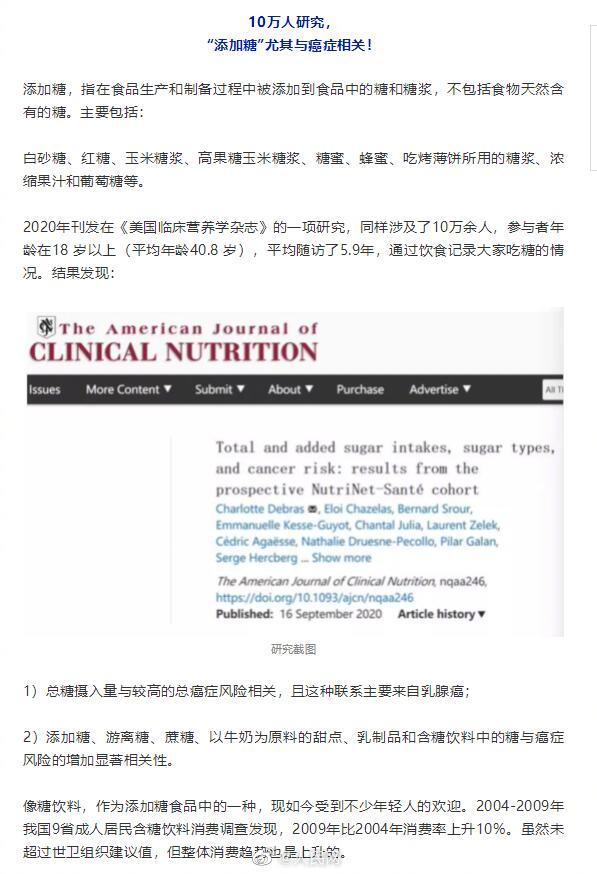 一项超10万人的研究成果显示,#每天喝100ml含糖饮料患癌几率高18%#。长期高糖摄入会导致肥胖和胰岛素抵抗,造成内氧化应激、内分泌紊乱及免疫功能障碍,从而导致肿瘤的发生风险增加。无糖不代表完全没有糖,如何控糖?详戳↓↓(科普中国)