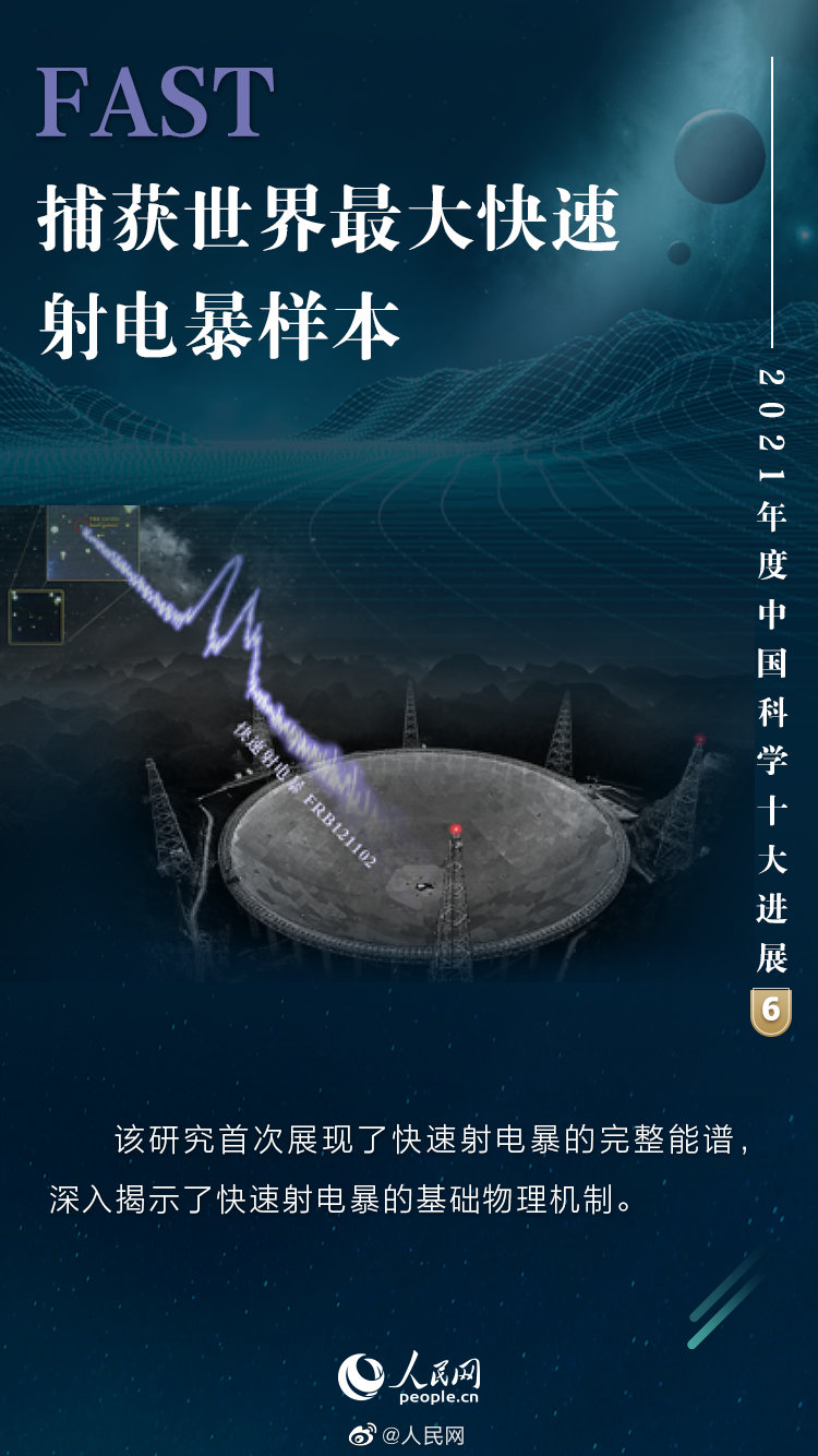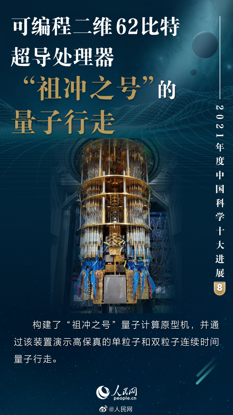 2021年中国科学进展有多牛2月28日,2021年度中国科学十大进展发布:①火星探测任务天问一号探测器成功着陆火星;②中国空间站天和核心舱成功发射,神舟十二号、十三号载人飞船成功发射并与天和核心舱成功完成对接;③从二氧化碳到淀粉的人工合成;④嫦娥五号月球样品揭示月球演化奥秘;⑤揭示SARS-CoV-2逃逸抗病毒药物机制;⑥FAST捕获世界最大快速射电暴样本;⑦实现高性能纤维锂离子电池规模化制备;⑧可编程二维 62 比特超导处理器“祖冲之号”的量子行走;⑨自供电软机器人成功挑战马里亚纳海沟;⑩揭示鸟类迁徙路线成因和长距离迁徙关键基因等10项重大科学进展入选。(人民网)