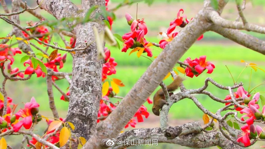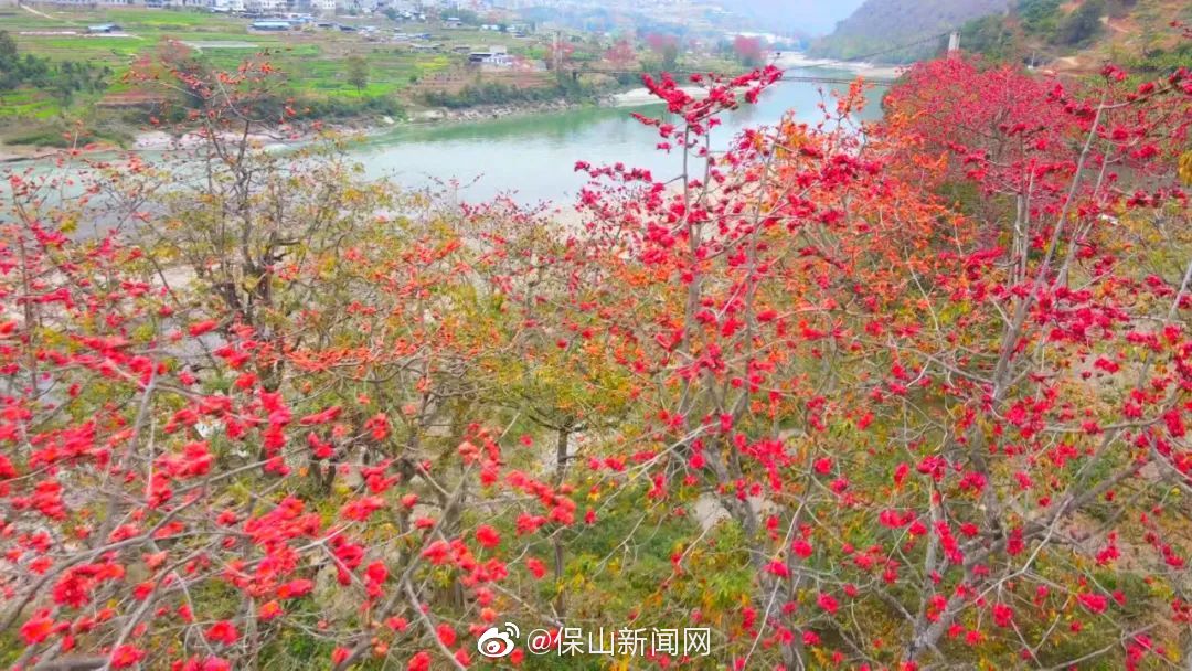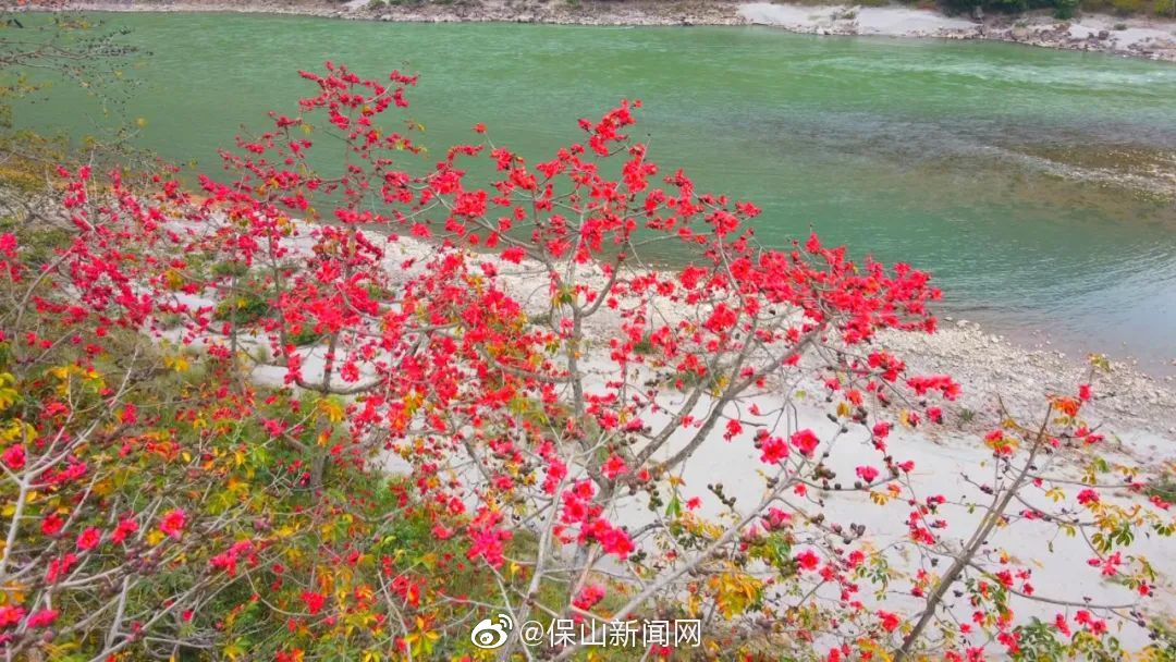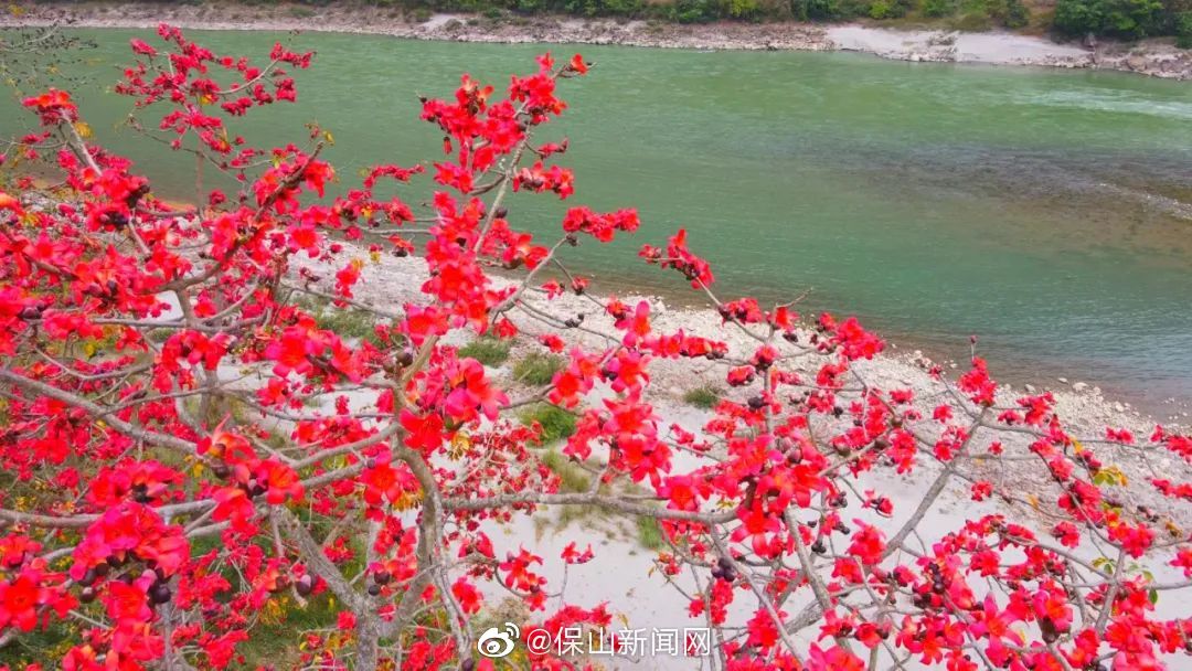 施甸:木棉花开红似火 赤焰灼灼染江畔