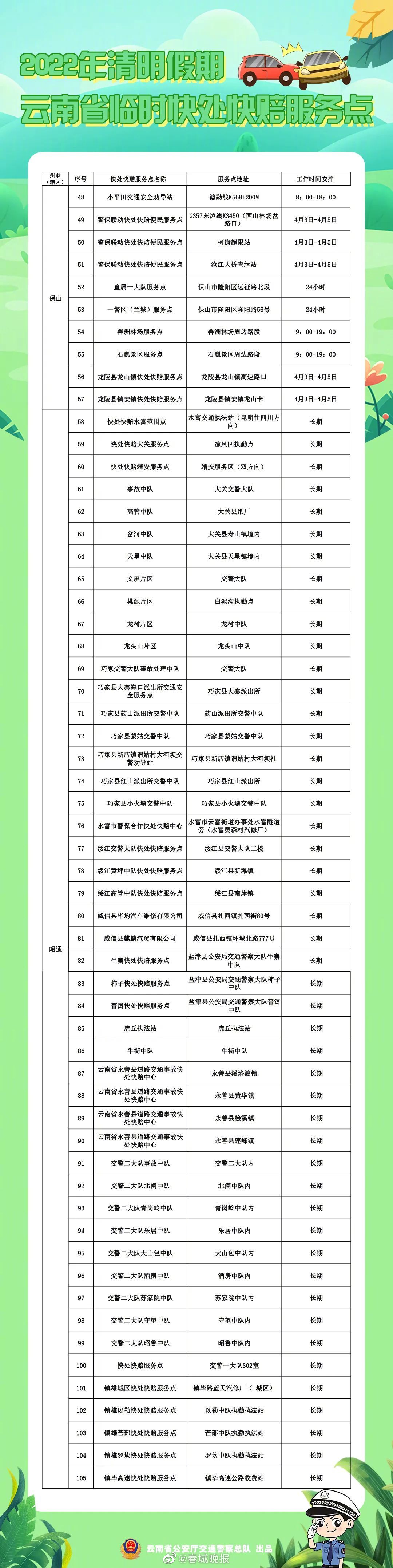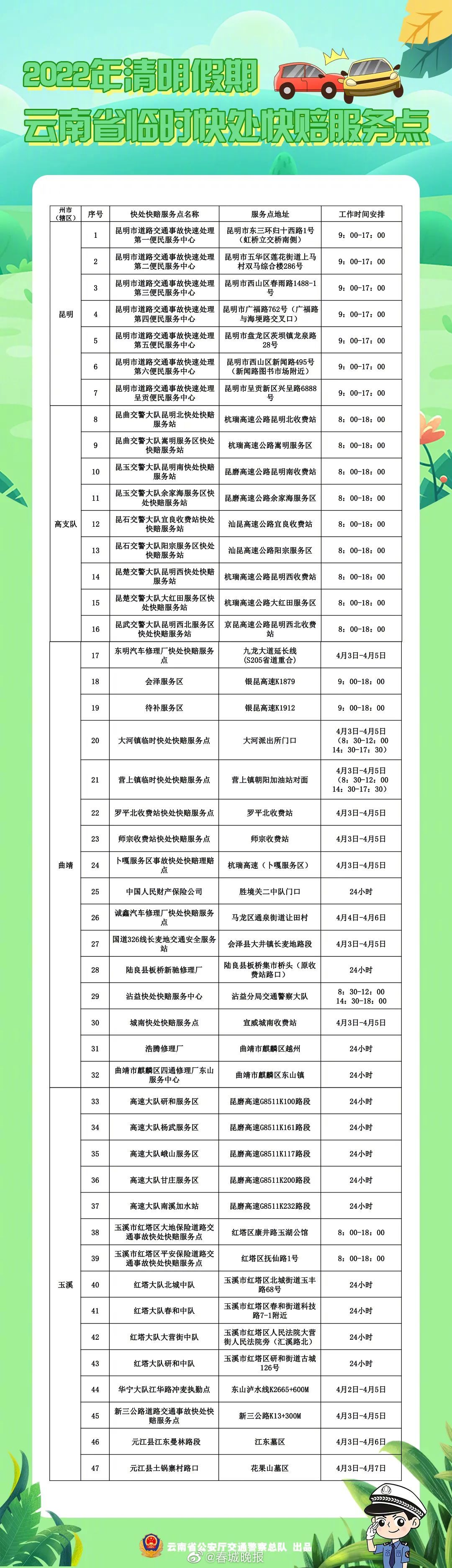 清明假期云南交警设置258个快处快赔临时服务点!位置就在→