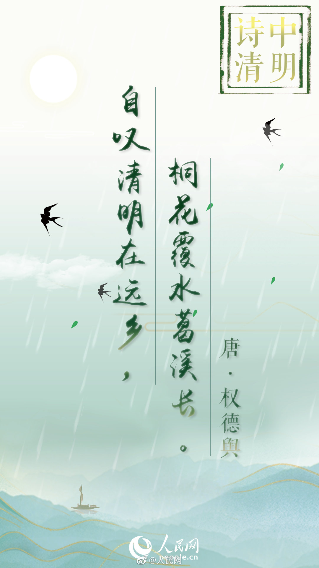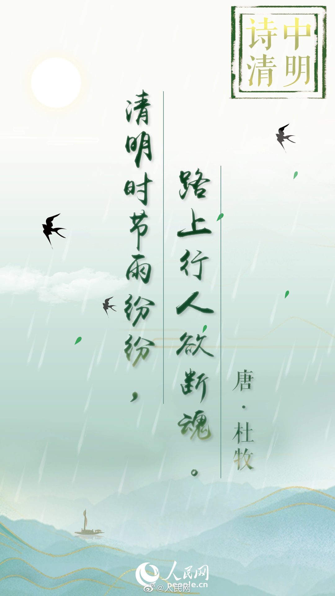 是“清明时节雨纷纷”“清明无客不思家”的淡淡哀愁,是“清明日出万家烟”“人心自愁思”的追忆故人,也是“满街杨柳绿丝烟”“梨花风起正清明”的四月春景。不妨跟着古人的诗句,感受这春和景明!#网络中国节·清明#(人民网)