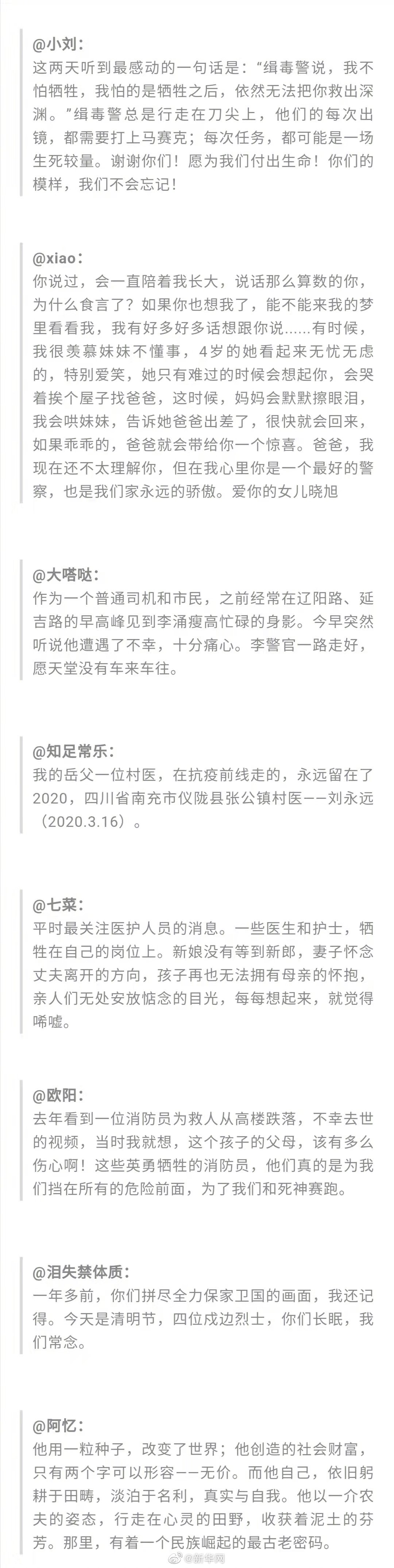 年年岁岁从指缝间划过,时间又走了一年,而对你的想念,又多了一年。那些离开我们的人,只要我们还记得,他们就不曾消失。我们,不会忘记......小到一个人,一个家庭,大到一个民族,一个国家,都有不被忘却的名字。