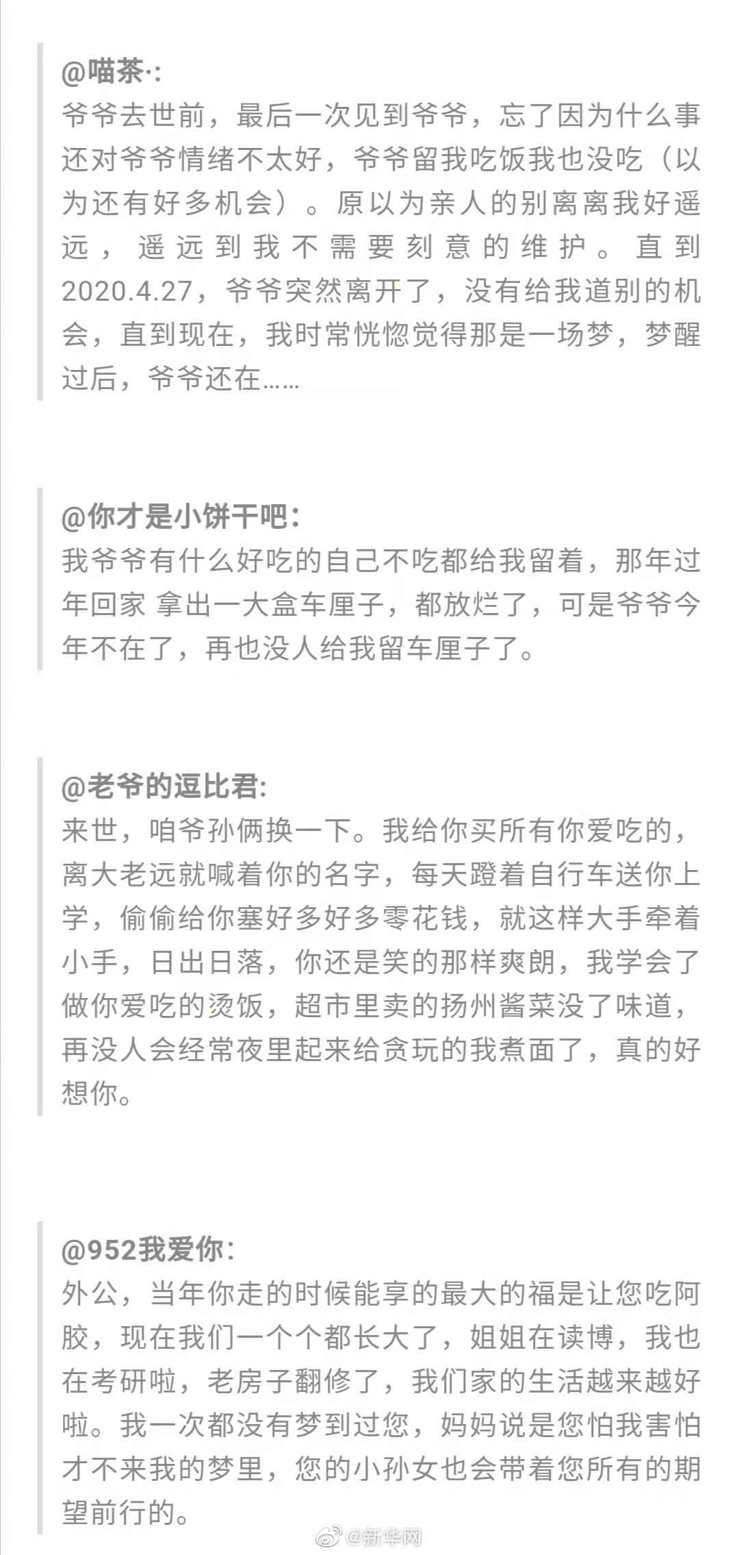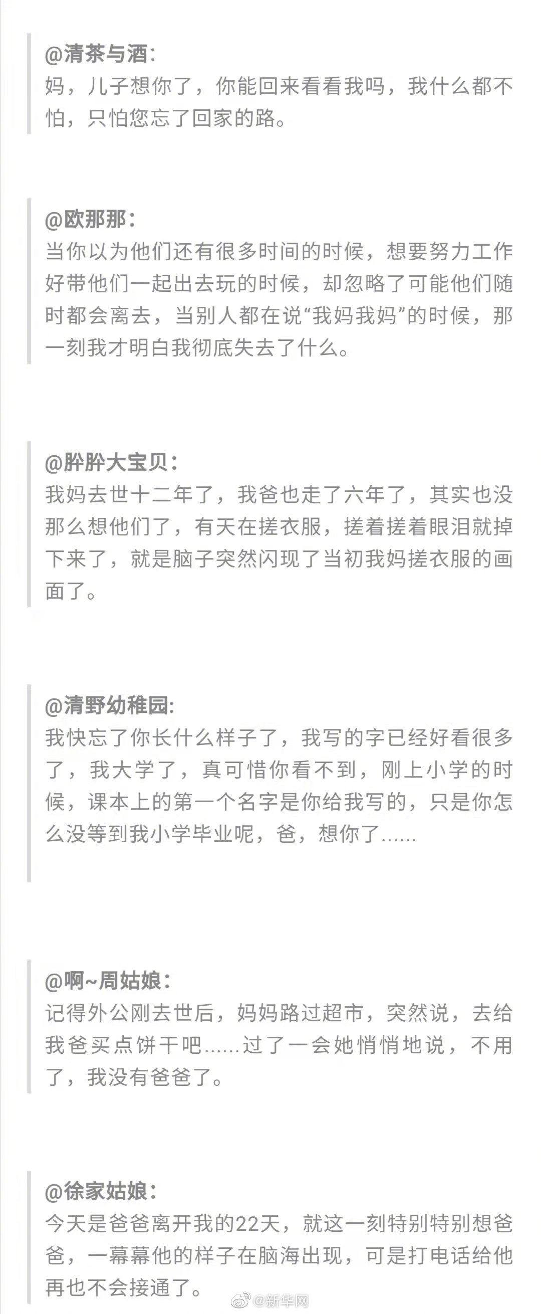 “我想你了”,这是今天最想说的话。你在思念谁?你想说些什么?来给我们留言吧,今天,我们做你们的树洞。愿花飨逝者,春暖斯人。