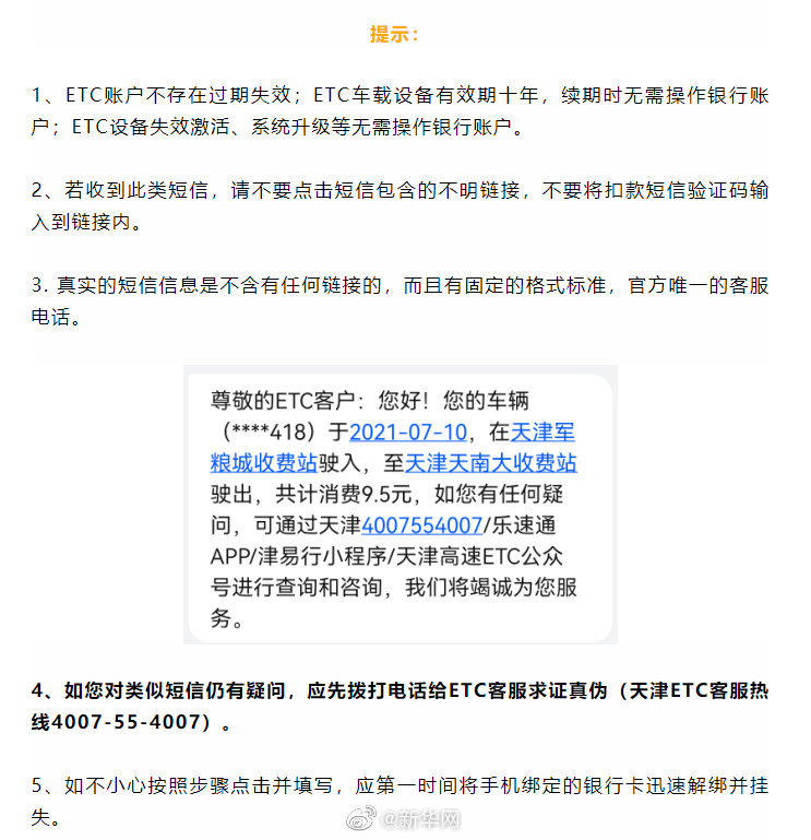 转发提醒!这类所谓车辆ETC温馨提示可能是诈骗信息