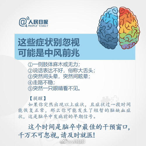 杭州,小吴32岁,经常熬夜刷剧、玩游戏,外卖、夜宵不断,含糖饮料顿顿不离,每天至少一包烟。虽然有高血压和糖尿病,但他却一直抱着侥幸心理,不按时吃药,也没有及时监测病情变化。近日,小吴吃午饭时突然摔倒在地,被诊断为急性脑梗。令人惋惜的是,小吴发生“脑梗死”已有半天,错过了6小时“黄金溶栓”窗口期。经过治疗,小吴现在能一瘸一拐下地走路。医生:早期的脑梗症状可能表现为面瘫、偏身的麻木、面目的感觉障碍;会突然出现一侧手臂或是一侧肢体的无力、麻木;如果出现了口齿不清、咬字不清晰、表达不清楚的话,也要引起重视;一旦出现了上述症状,一定要及早就诊。(钱江晚报)