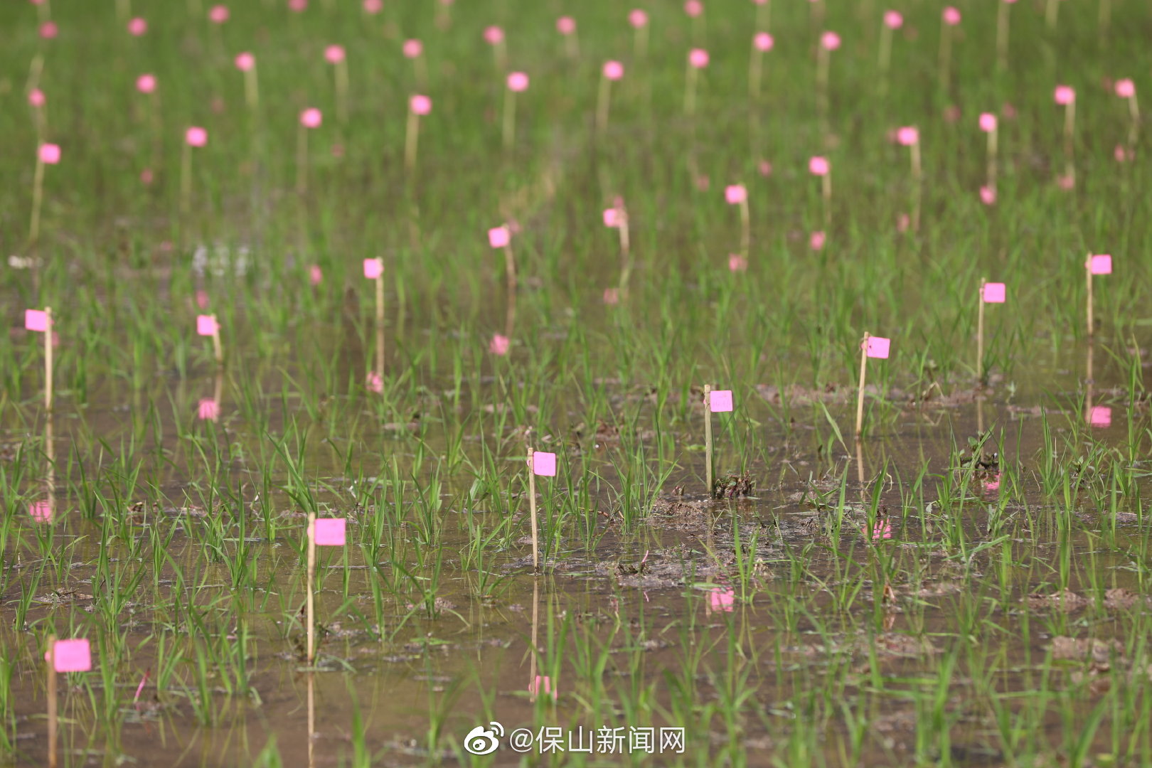 春生夏长,这几天,在保山施甸县水稻两用核不育系繁育基地,60000份水稻育种材料到了栽插的最佳节令,全部开始移栽“安新家”。为了便于在后期对这些育种材料进行准确的甄别和选择确定,在试验田里,每一份育种材料从秧盘拔出开始,到移栽到大田里都会全程带着自己的粉红色“身份证”,同时,在栽插时采用单本栽插的方法进行移栽。