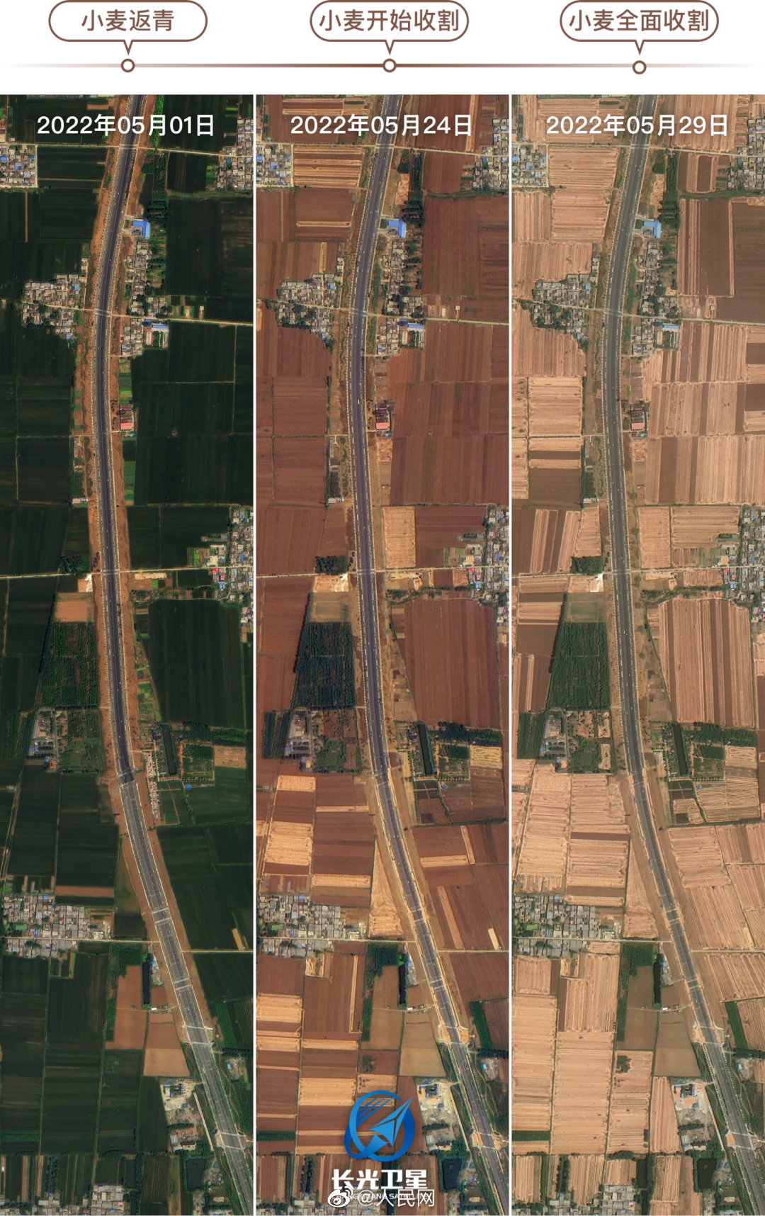 壮观!卫星视角下的中国麦田