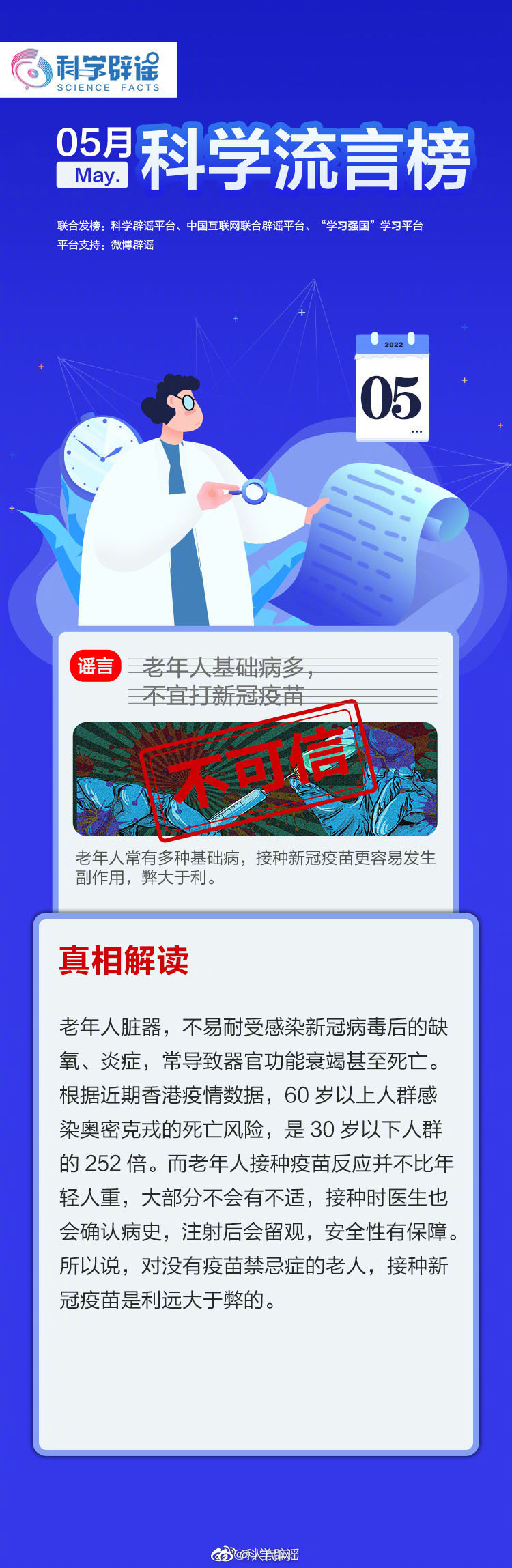 老年人基础病多,不宜打新冠疫苗?豆浆喝多了会诱发乳腺癌?打性抑制针可用于增高?......#5月科学流言榜#↓↓这些谣言别相信!