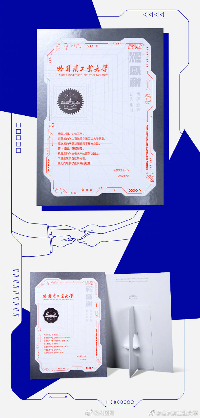 一份来自理工科的浪漫!哈工大2022录取通知书会发光镶宝石