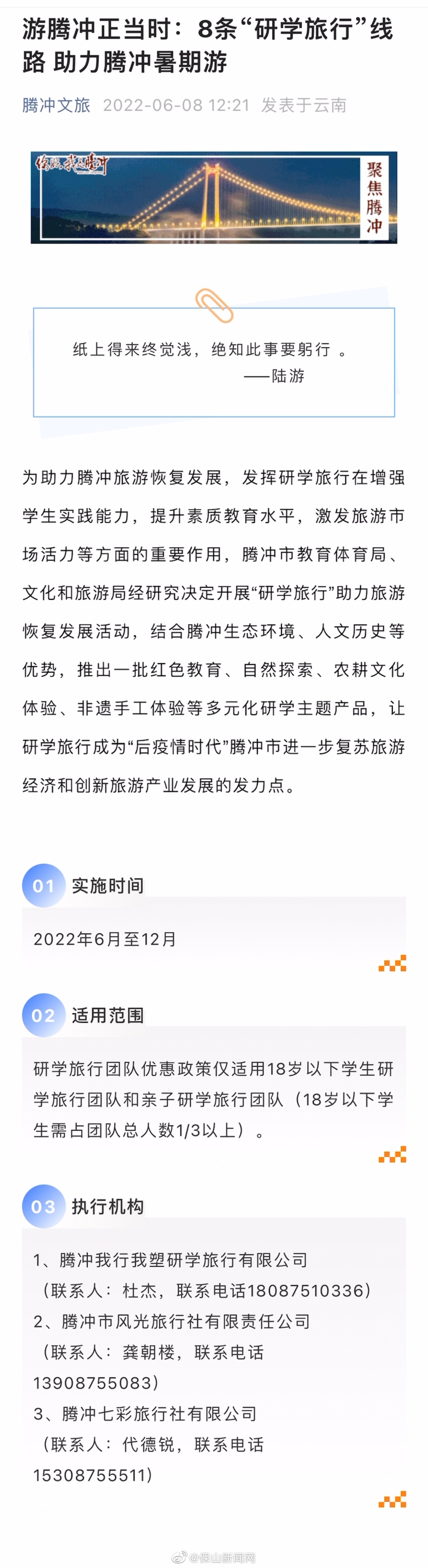 高考完准考证千万不要丢!腾冲8条“研学旅行”线路供你选择