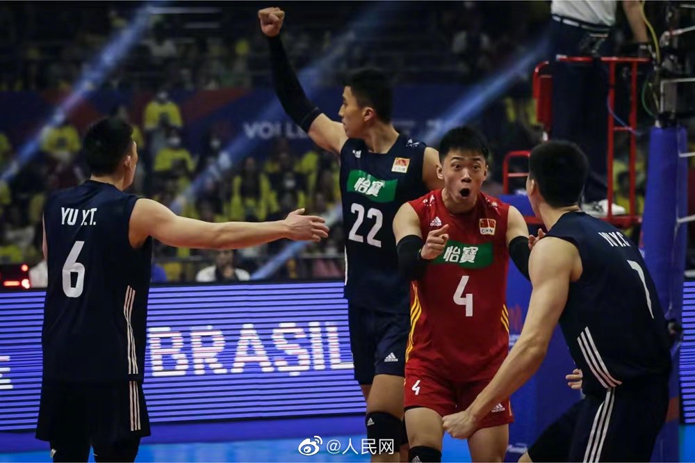北京时间6月12日晚,在2022年世界男排联赛巴西站中,中国男排以3:0(25:23、31:29、25:23)横扫世界排名第一、东道主巴西男排,取得首场胜利。#中国男排战胜巴西男排#(人民网胡雪蓉 图:国际排联官网)