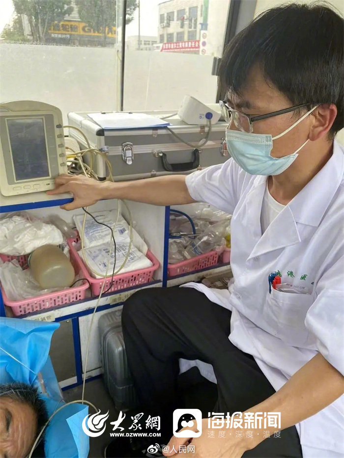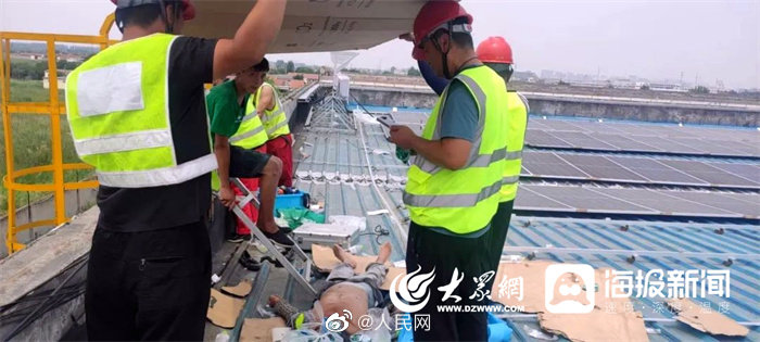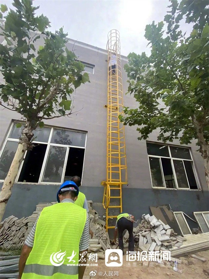 赞!36℃高温, 东营鸿港医院急诊医生攀爬十几米工程爬梯救人!