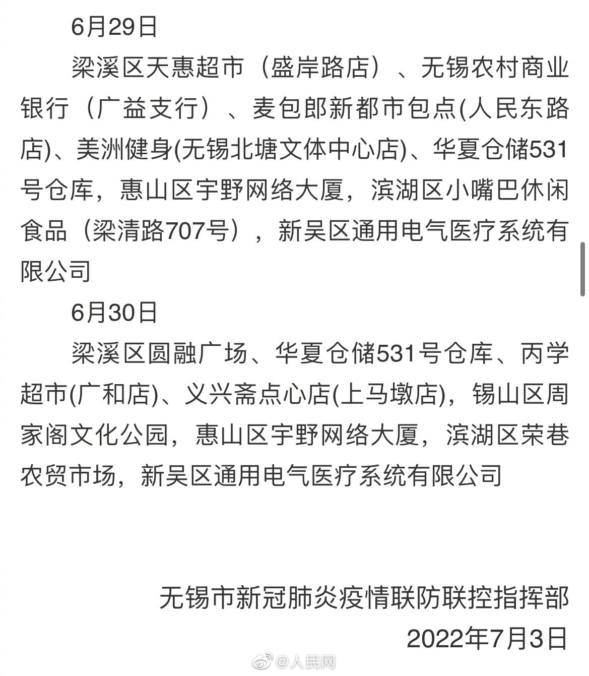 7月2日上午,无锡在对集中隔离和重点风险人员进行核酸检测中发现31名初筛阳性。经市疾控中心复核为阳性,随即转运至市定点医院诊疗,涉及病例居所、工作场所、经停的重点区域已迅速落实管控措施。#无锡新增病例活动点位#↓