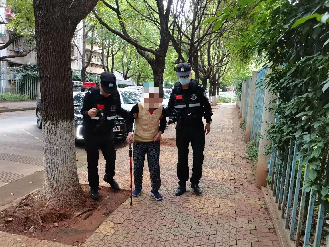 民警将老人送到小区,老人儿子已在小区门口等待;民警将老人交给其儿子,叮嘱老人儿子尽量不要让老人单独出门,老人外出可让老人随身携带电话或写有家人联系方式的纸条,以便热心群众和民警能及时联系到家属,将老人及时送回家。老人儿子对民警的热心帮助表示感谢。