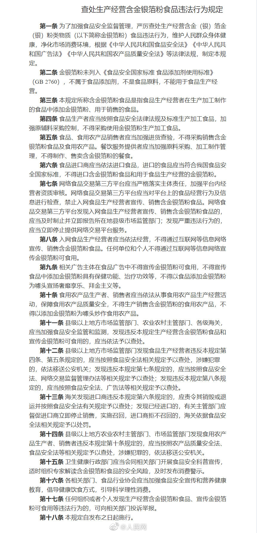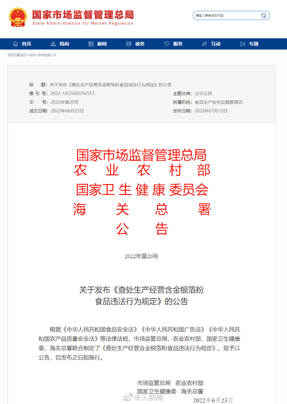 四部门:网络平台应禁止销售含金银箔粉食品