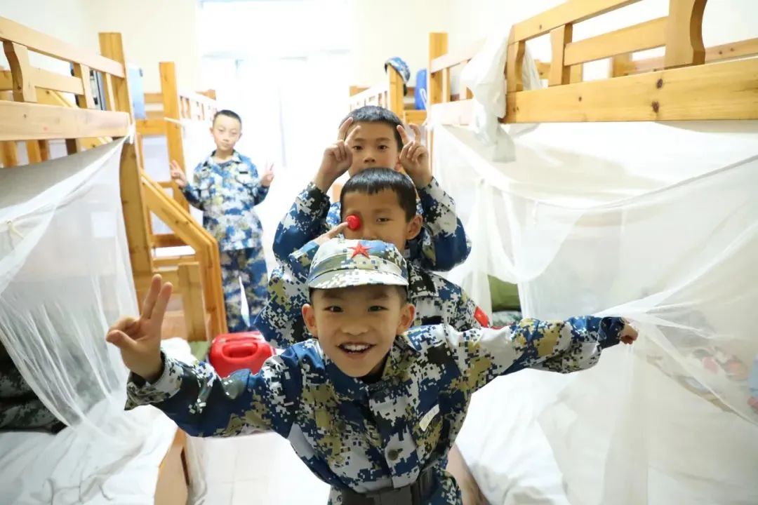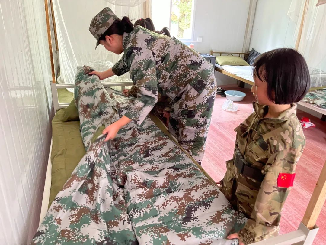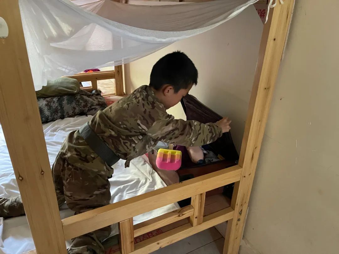 在教官的带领、父母的协助下,孩子们将行李放进宿舍,还在宿舍里认识了新朋友。