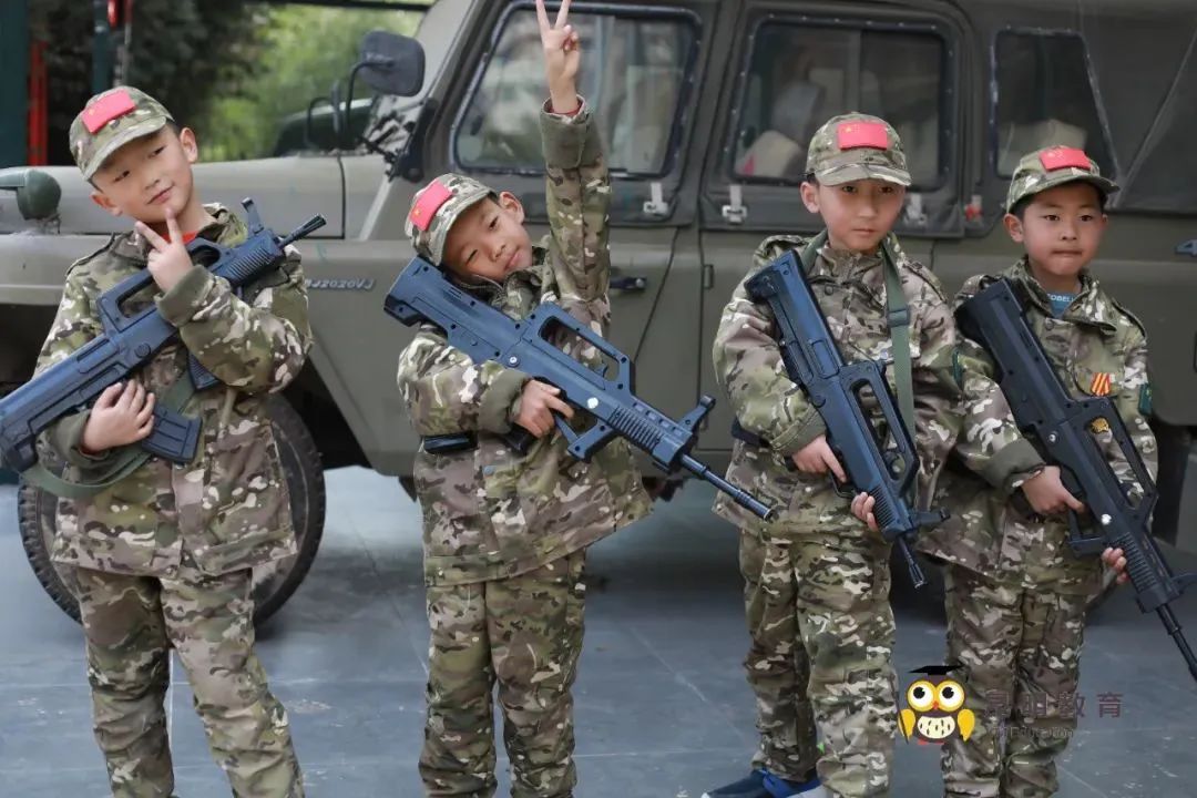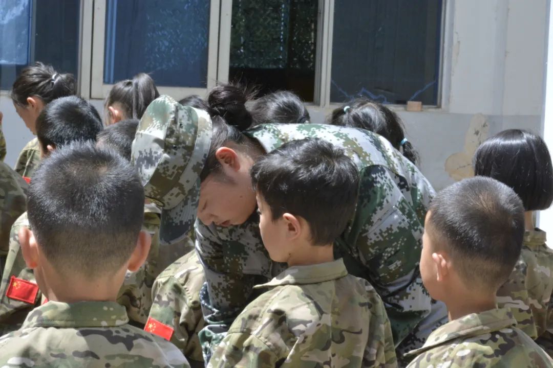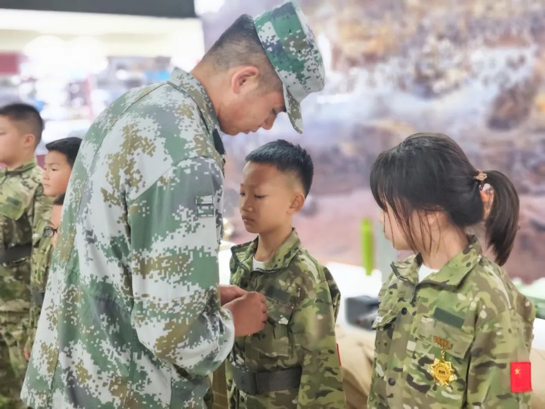 晚上,“老兵”授勋仪式和国防教育也安排上了,孩子们渐渐进入状态,越来越像一名真正的小小兵了。