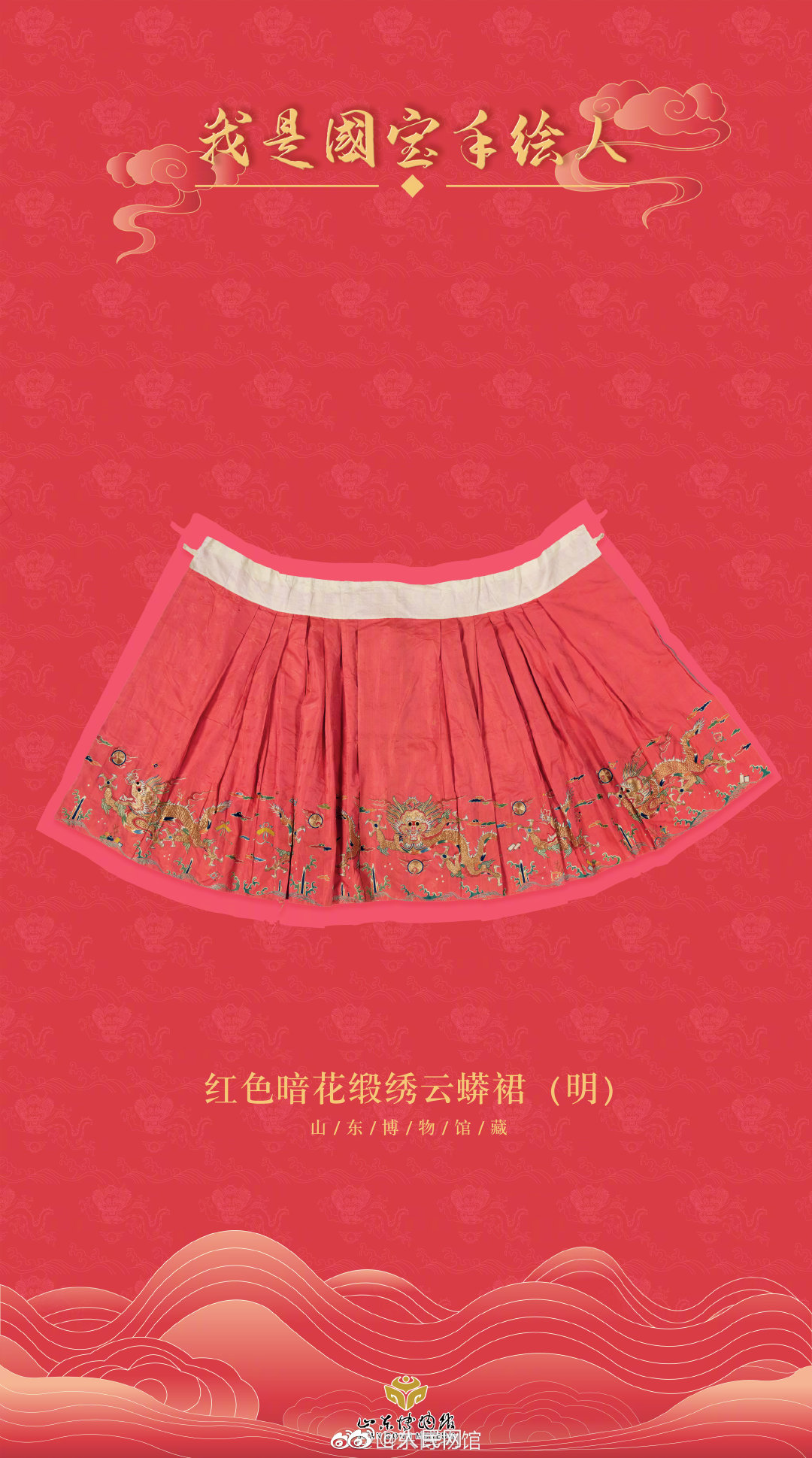 马面裙,又名“马面褶裙”,是中国古代女子主要裙装款式之一。它的形制最早可以追溯到宋代,明清时期最为流行。(图@山东博物馆)
