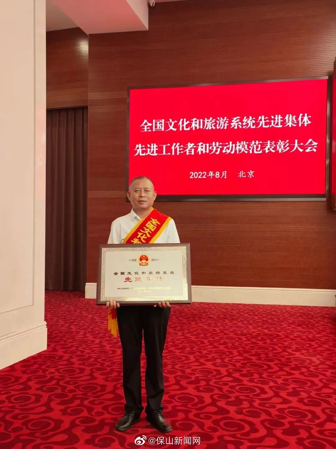 8月31日,全国文化和旅游系统先进集体、先进工作者和劳动模范表彰大会在京举行,231个先进集体、401名先进工作者、95名劳动模范受表彰。文化和旅游部党组书记、部长胡和平出席大会并讲话。保山市文化和旅游局被人社部、文旅部授予全国文化和旅游系统先进集体称号,并接受表彰。