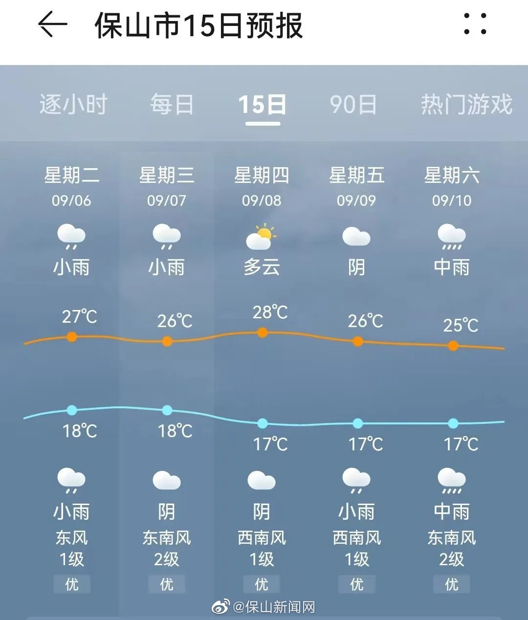 预计本周保山市多阵性降水