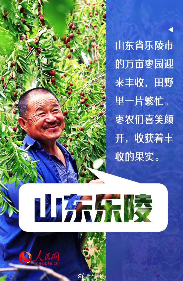 全国各地喜获丰收,风吹千重浪的金色麦田,个儿大多汁的福建猕猴桃,皮薄脆甜的山东小枣……最美“丰”景映红了农民们的笑颜,戳图↓↓来看第五个#中国农民丰收节#的农民笑颜。(人民网)