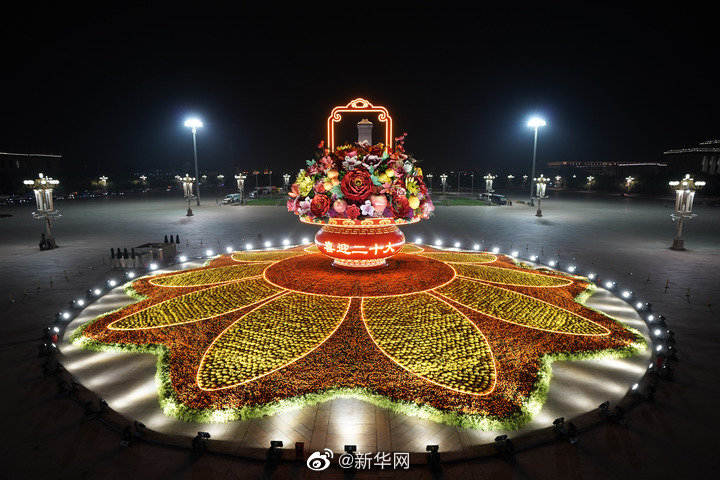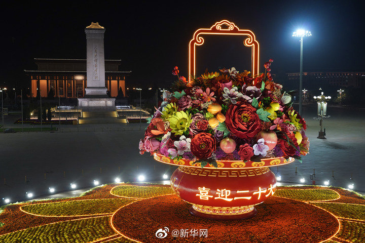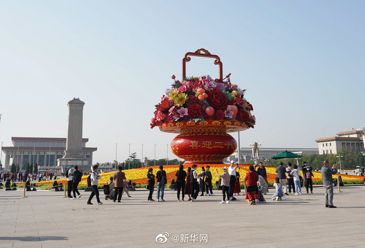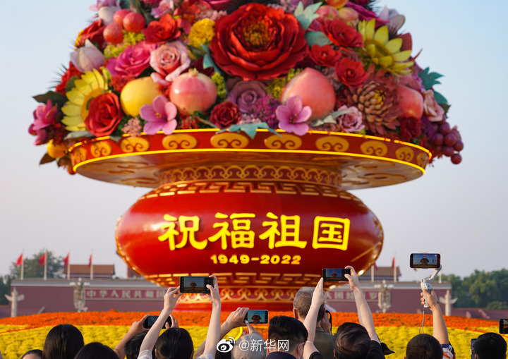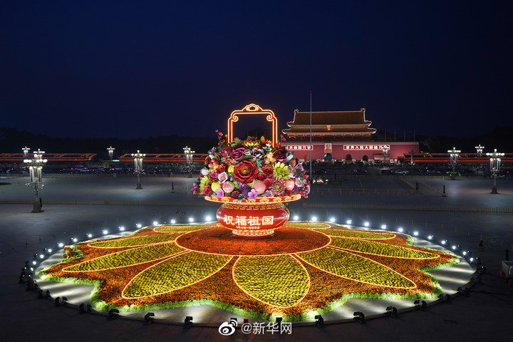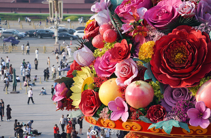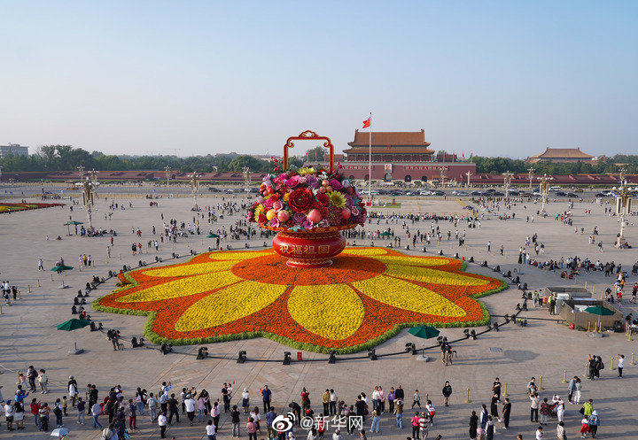 天安门广场巨型花果篮多角度大图国庆节临近,“祝福祖国”巨型花果篮亮相北京天安门广场。今年“祝福祖国”巨型花果篮顶高18米,以喜庆的花果篮为主景,花坛底部直径48米。