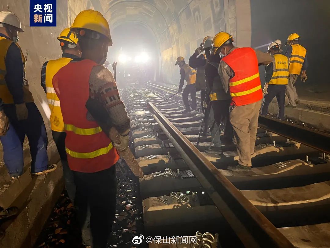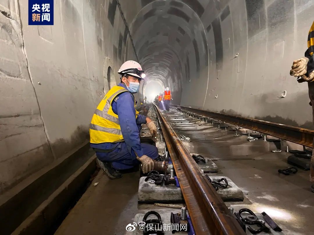 10月4日14时18分,随着2根500米长钢轨成功铺设,大瑞铁路全线第三长隧道——保山隧道完成铺轨。