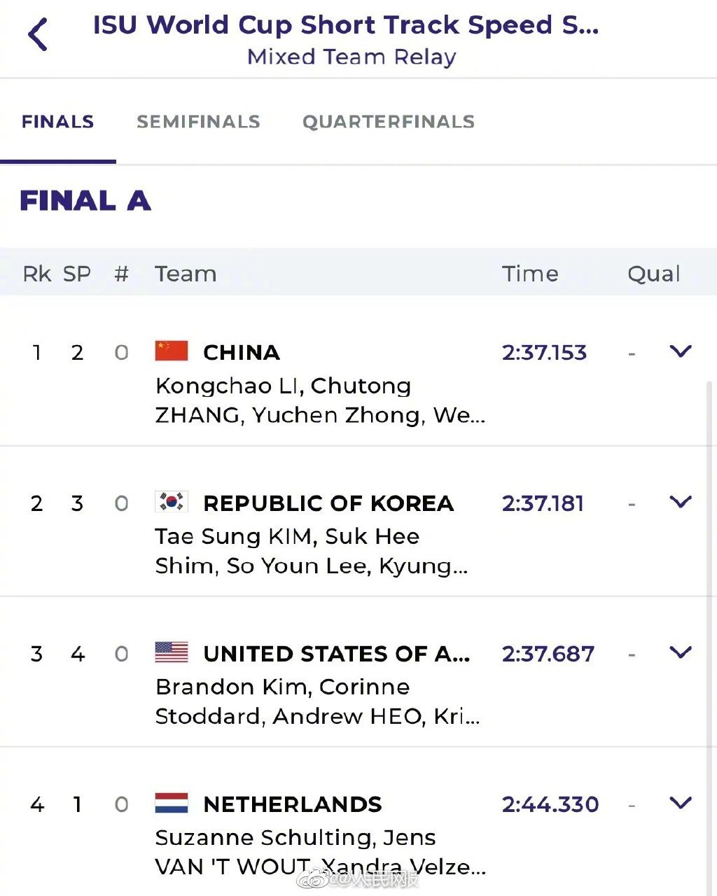 恭喜!中国队短道速滑2000米混合接力金牌