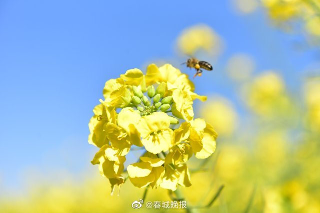 “罗平头一波油菜花开啦!”春节将近,云南罗平最早种植的一波油菜花已经盛开。连日来,位于罗平县城附近的羊者窝村内,40亩左右的油菜花已迎风怒放,花开成海。金色的花田中,蜂飞蝶舞,满目金黄,伴着山峦、村庄和远处的县城楼宇,构成一幅暖冬下闪耀的风景线,美不胜收。#欢欢喜喜迎兔年# (春城晚报—开屏新闻记者 蒋琼波 摄影报道)