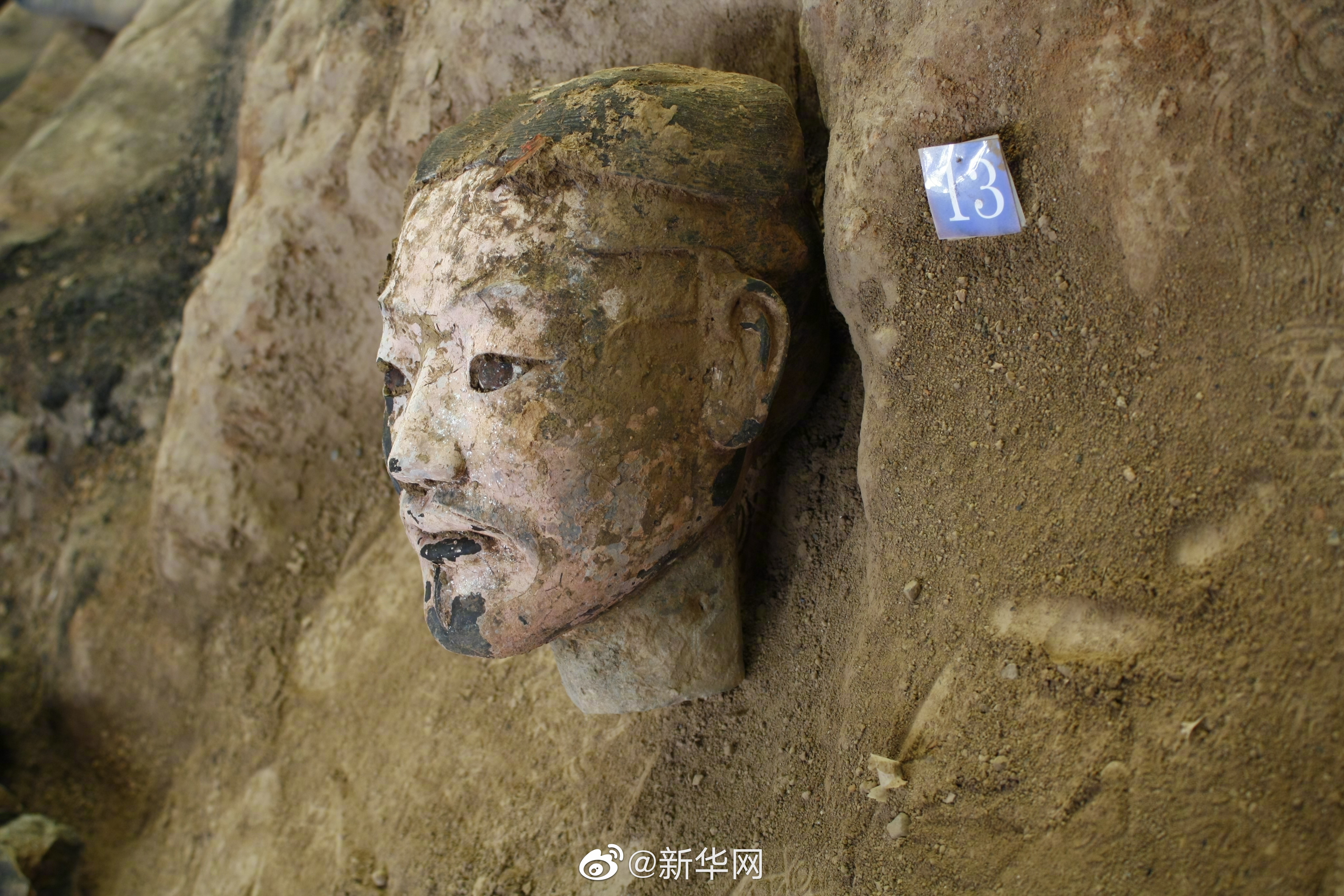 一号坑的第三次考古发掘开始于2009年,发掘面积约430平方米,目前共清理陶俑220余件、陶马16匹、战车4乘,以及车马器、兵器、生产工具等。
