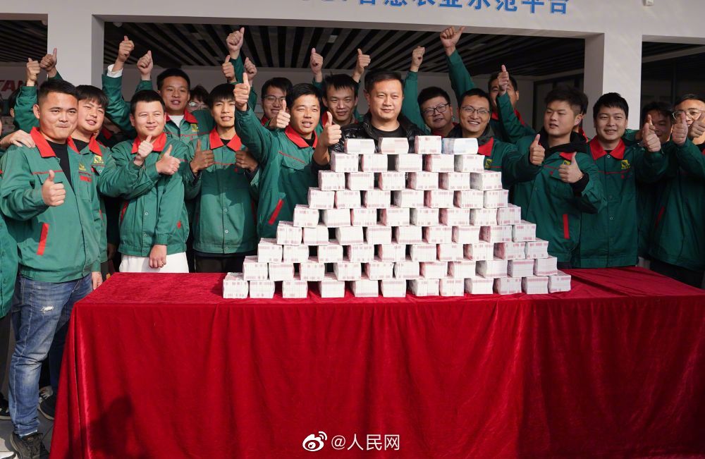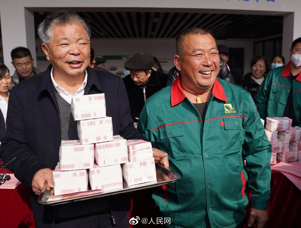 10日,江西省南昌市安义县种粮大户凌继河给手下的种粮能手和员工共发放721万元现金作为年终奖,这也是凌继河连续十二年给农民发放年终奖。@新华社