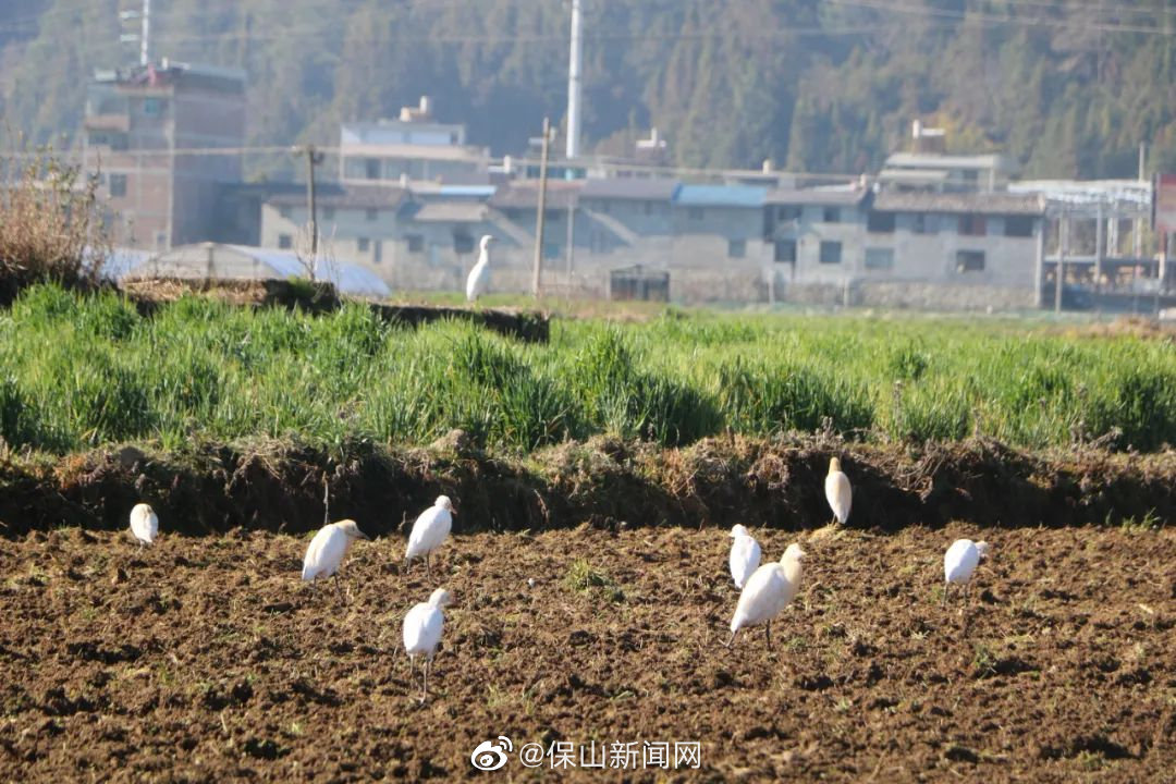 春节期间,镇安的白鹭们也好似要乘着好时光,四面八方凑在一起唠唠家常。道路边,麦田里,空地上,随处可见它们觅食、栖息、嬉戏的身影,成群结队低语着、诉说着,比一比谁飞得高、飞得远,谁的羽翼比较丰满,谁的冒险比较精彩,为寒冷的冬日乡村增添了一抹灵动之美。# 记忆保山#