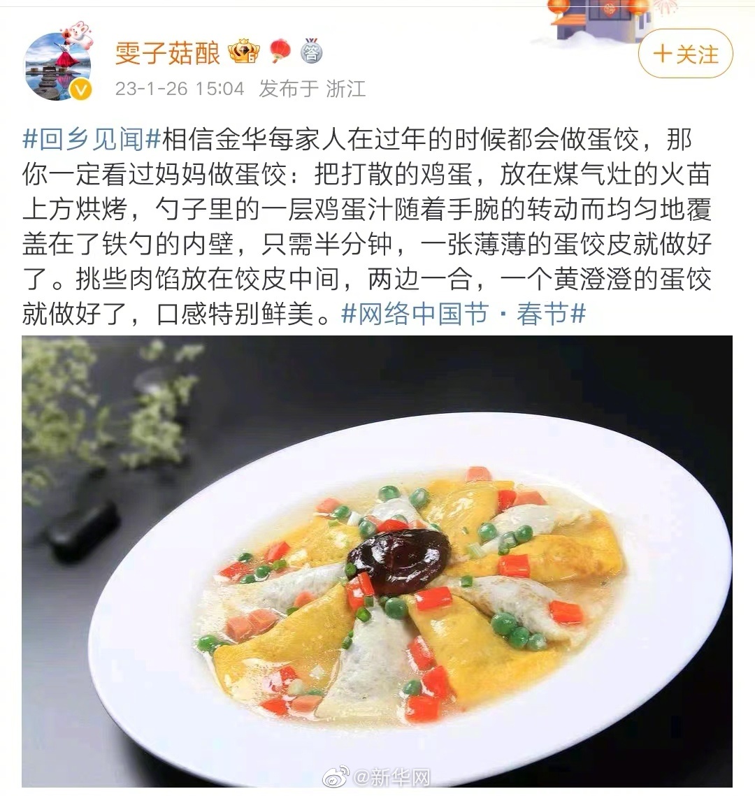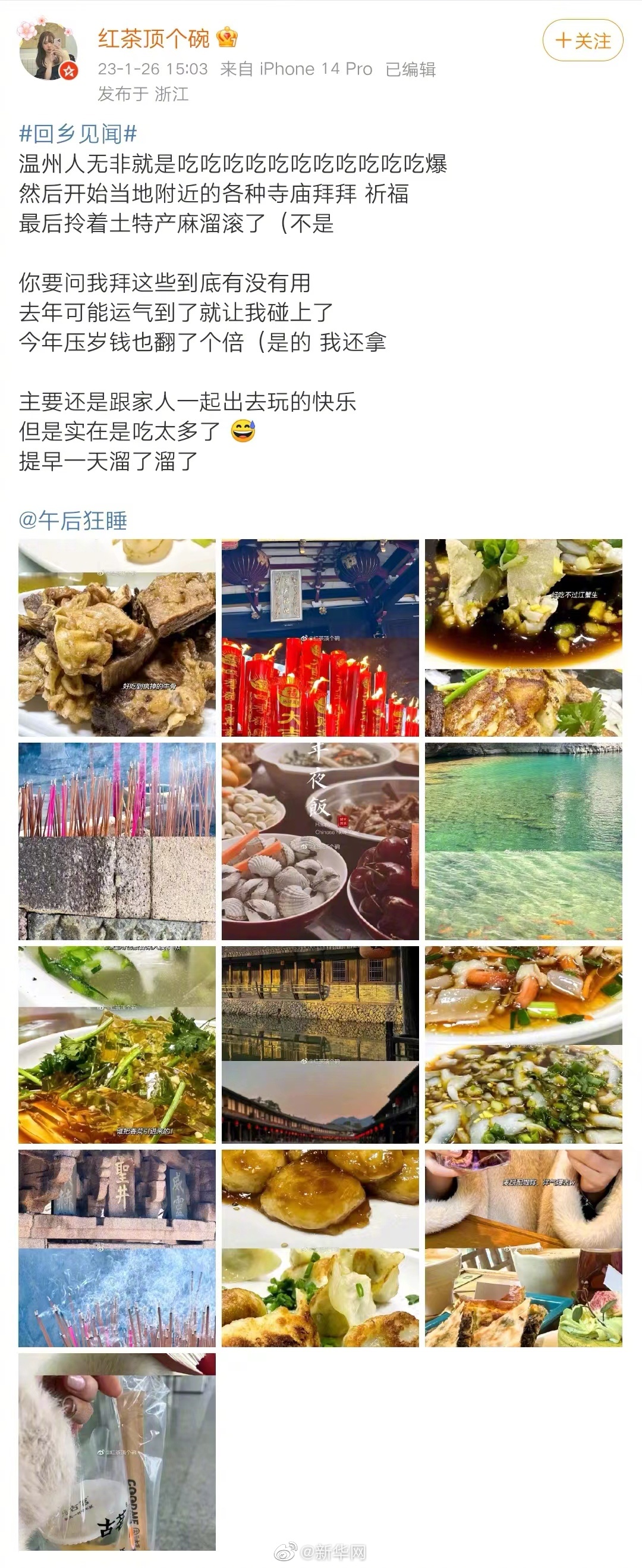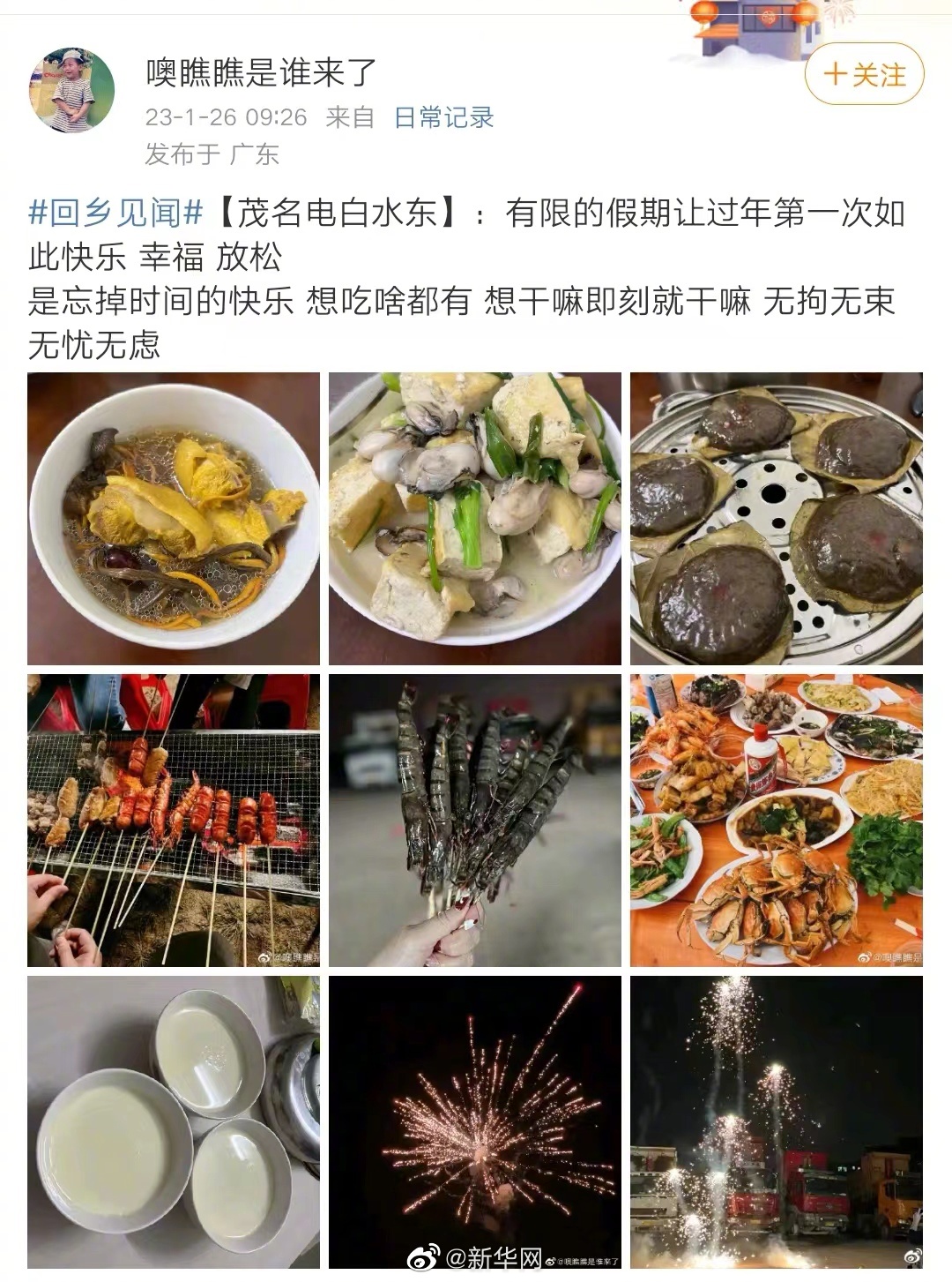 由@新华网 、微博联合多家机构共同发起的#回乡见闻#活动正在火热进行中。我们选取了@粉红粉红的仙女胖 @知足常乐3412 @刘大可先生 @Quiliano @红茶顶个碗 @这还是一个没有会员的微博cccC @雯子菇酿 @噢瞧瞧是谁来了 @呵呵这很吴小蒙 的微博内容,感谢你们分享了春节期间的家乡美食,我们将为您送上200元微博红包,红包将于活动结束后由@微博红包 统一发放。关注@新华网 ,记录你的回乡见闻,一起分享春节期间的家乡美食,优质内容将有机会被翻牌并获得红包呦~
