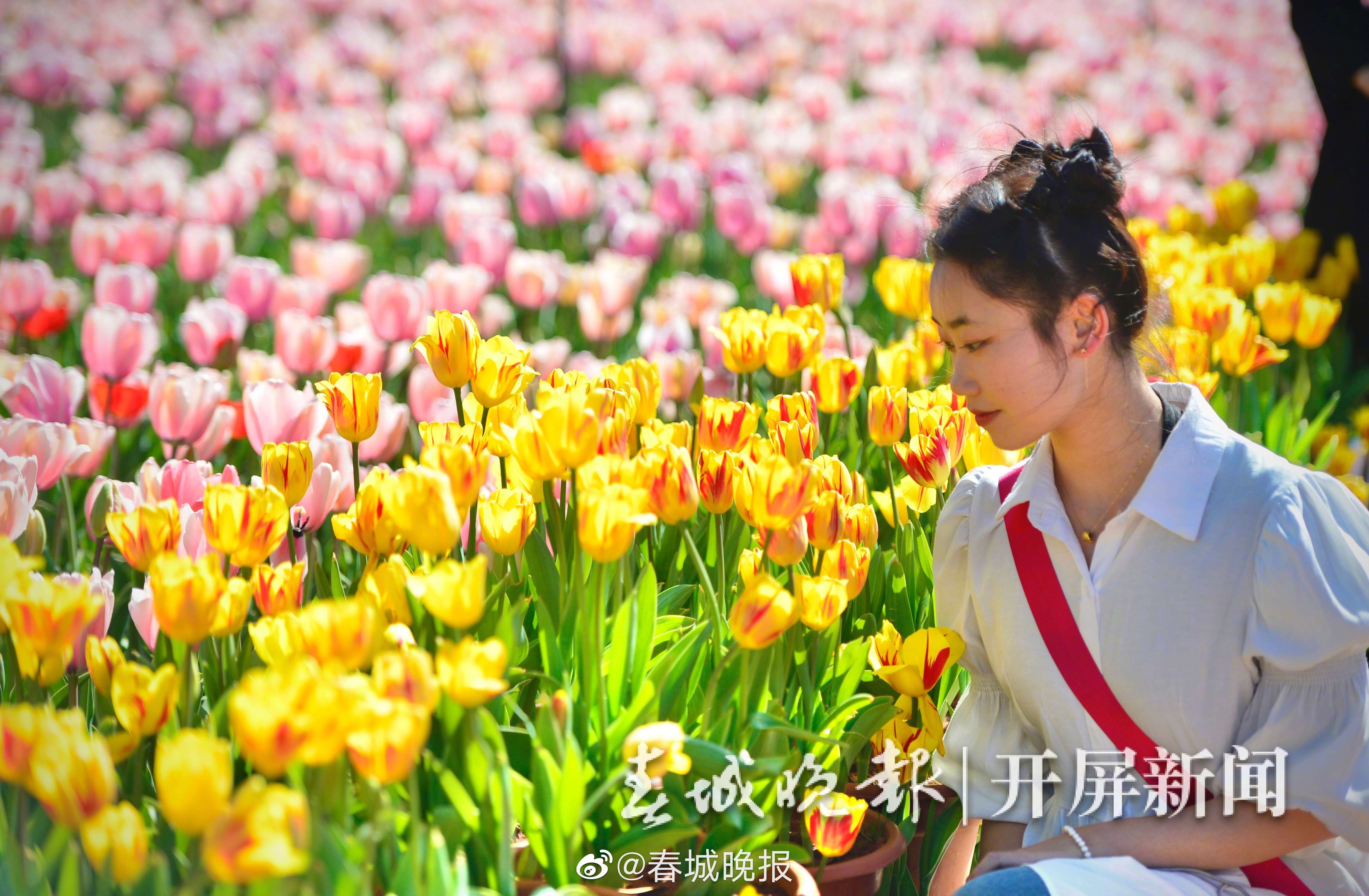 本周六将迎来立春,春暖花开的日子里,园内各式郁金香优雅绽放,游人们可在醉人的花海中享受春日好时光。(春城晚报—开屏新闻记者 龙宇丹 摄影报道)