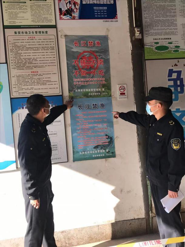 三是抓宣传,强引导。在检查过程中针对经营商户大力宣传普及“十年禁渔”政策,督促经营户在明显位置粘贴宣传海报、倡议书及告知书、市场主办单位在市场进出口及显眼位置张贴宣传画册,向周边居民发放宣传资料,积极倡导大家做到不买、不食长江流域野生水产品,营造不购进、不售卖、不食用的良好氛围。