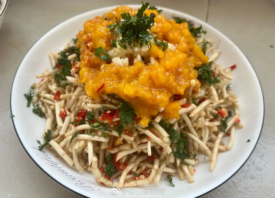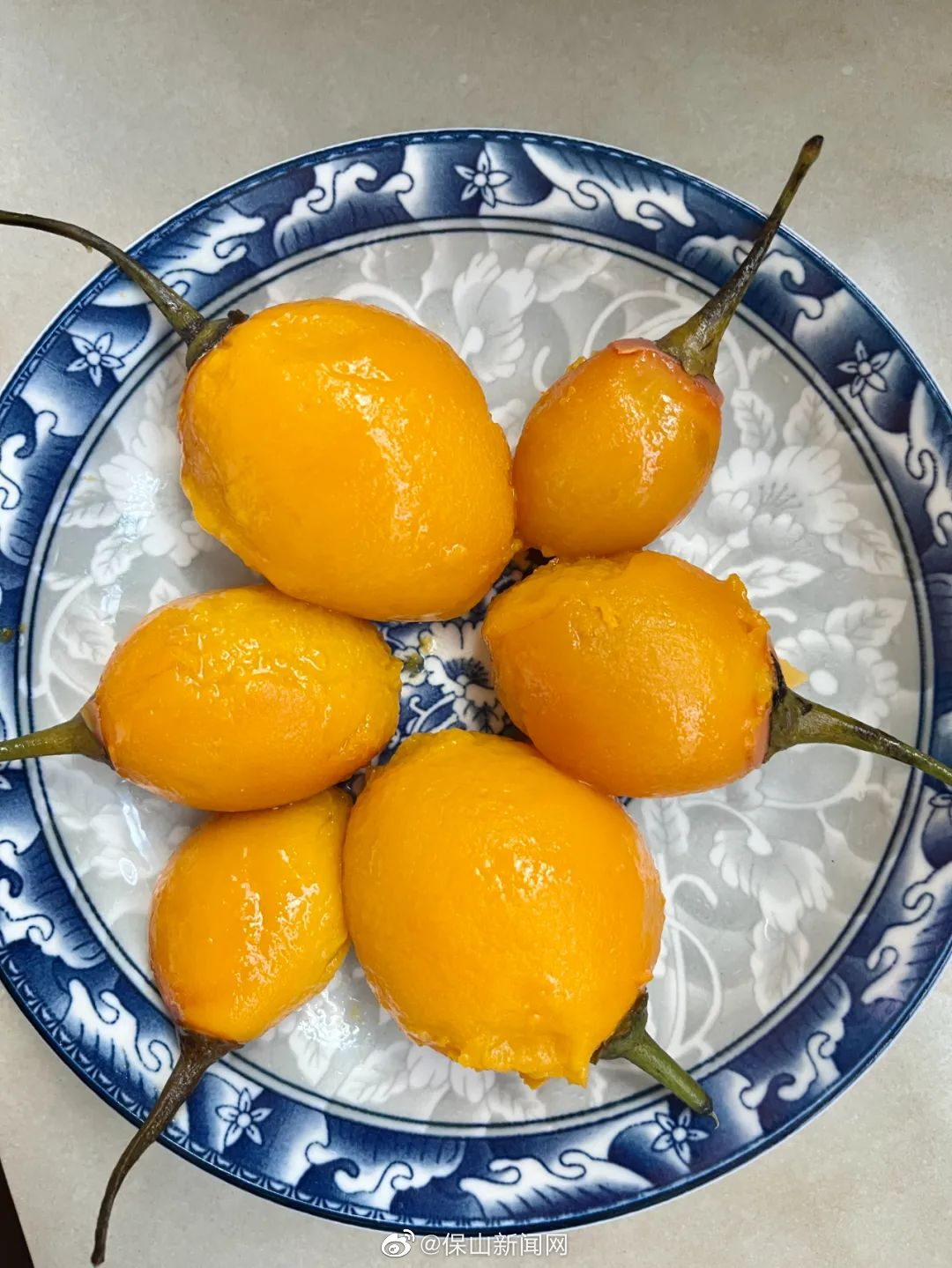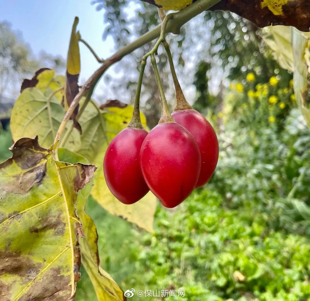 洋酸茄,学名木本番茄,又叫大树茄、树番茄、鸡蛋果,洋酸茄成熟时为红色,果实椭圆形,肉厚、皮薄,果肉酸中带甜,稍微有点涩味,有一种热带果子的特殊风味。洋酸茄在龙陵既可以做水果吃也能做菜、“打蘸水”。作为水果来吃,只要剥开皮直接吃里面的果肉就行。做菜时,将洋酸茄在火上烤熟后去皮切碎,放上香菜、大蒜、生姜碎、盐、火烧辣椒等佐料搅拌在一起,就是一道酸甜开胃的下饭美食。其中洋酸茄拌青辣子,再加上干鸡枞(或是油鸡枞)、大蒜、生姜、芫荽,是龙陵人喜爱的洋酸茄家常菜。洋酸茄还可以用来拌鱼腥菜、拌火烧辣子、煮棕包米汤、煮酸扒菜、煮鱼等。#保山旅游#