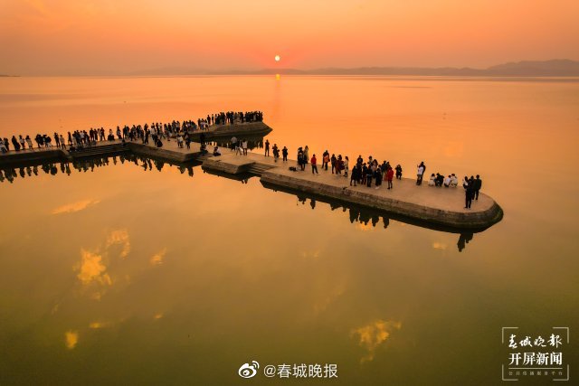 海晏村——号称昆明最美日落观赏地。在昆明海晏村,特殊的地理环境,造就了沙滩、“大海”、日落的景象。3月8日的傍晚,春城晚报-开屏新闻记者来到海晏村,日落“沉溺”于橘色的“海”,水面倒影仿若天境,人在水中走,宛在画中游。有一种生活叫“云南”,有机会一定要去昆明海晏村看一次“天空之镜”!(春城晚报-开屏新闻记者 龙宇丹)