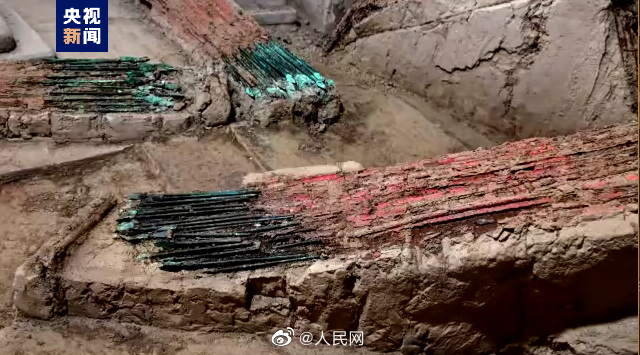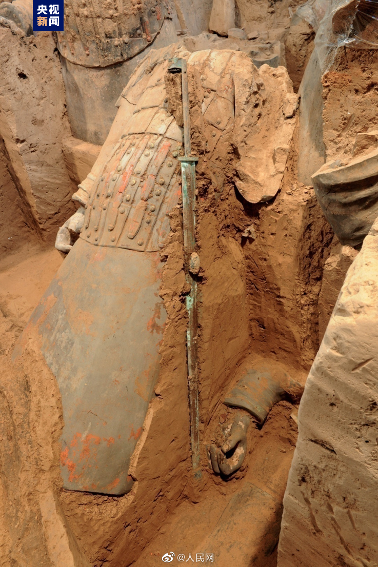 佩剑俑为王负剑谜题提供线索日前,兵马俑一号坑第三次发掘公布多项考古成果。截至目前,这次发掘共清理出陶俑220余件,陶马16匹、战车4乘、鼓2处、鼓槌1处、漆盾1处、笼箙3处,发现车马器、兵器、生产工具等,共计千余件组。佩剑俑的发现还为解决《荆轲刺秦王》中“王负剑”是怎么背的谜题提供了线索。(央视)