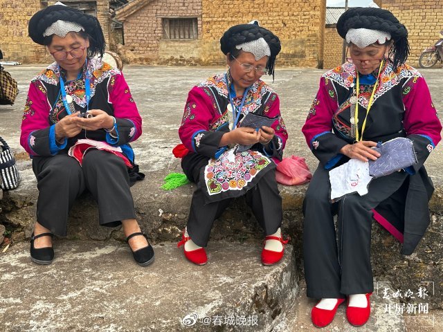 在绿春县牛孔镇鑫盛社区绣娘工作室,几位当地的彝族绣娘正整理着自己的得意绣品,亲切地向记者介绍彝绣这一非遗传统技艺,交流指尖“针”功夫。