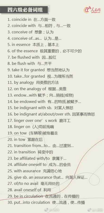 据教育部教育考试院,2023年上半年全国大学英语四、六级考试报名工作启动。笔试将于6月17日举行,口试5月20-21日举行。#290个四六级高频词组#,转给备考的小伙伴!(人民网李依环)