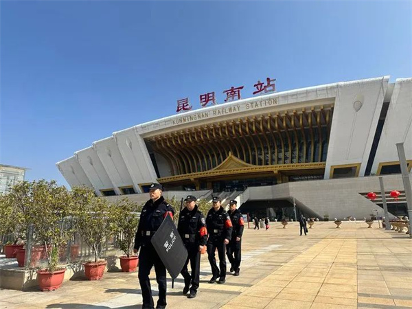 春节期间, 分局民辅警与“红袖标”,用坚守诠释责任,用行动守护平安,他们是城市的守护者,是群众的贴心人,更是平安的“代言人”。当新年的第一缕阳光洒满春城,那藏蓝身影与跃动的“红袖标”,依然穿行在大街小巷,续写着“人民公安为人民”的最美篇章。(昆明信息港 呈贡警方供图)