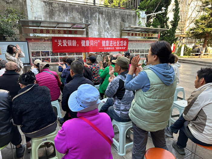 昆明信息港讯 为切实关爱辖区老年群体健康生活,提升科学用药安全意识,红盛园社区党委、万裕社区党委携手云南白药大药房于3月11日在红塔花园小水池前开展“关爱银龄,健康同行”公益健康活动。