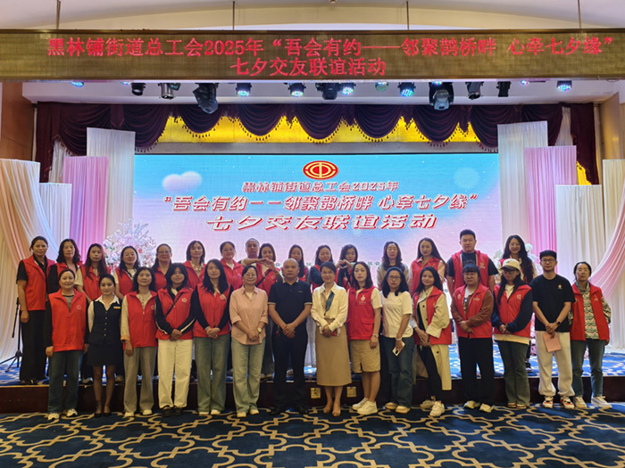 2025年8月29日,昆明市五华区黑林铺街道总工会联合红盛园、万裕、康宏、梁家河、鑫世、科澳6家社区在华地王朝大酒店举办“邻聚鹊桥畔 心牵七夕缘”青年交友联谊活动。本次七夕节活动得到了共建单位京东电器千禧城市旗舰店、华地王朝大酒店、昆明喜堂婚礼的大力支持,旨在充分发挥党建引领作用,增强工会青年职工的归属感和凝聚力,为单身青年职工搭建健康、积极的交友平台,大力弘扬传统文化,增强社区凝聚力。