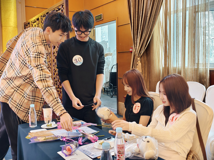 活动现场以浪漫的布置和热烈的气氛拉开序幕,环节设计丰富多样、趣味十足。活动一开始,借助“桃花朵朵开”破冰游戏,青年朋友们迅速打破陌生感,在欢笑与互动中拉近了彼此的距离;随后开展的“你比我猜”“七夕猜歌名”“教练说”等一系列互动游戏,不仅考验默契与反应,更将现场氛围推向一波又一波的高潮,欢笑声、掌声此起彼伏,洋溢著青春的热情与活力。最令人期待的“心动时刻”环节则将这份美好升华——青年们通过填写并传递“心动卡片”,勇敢表达心意,更有参与者主动上台告白,将属于七夕的浪漫氛围感彻底拉满,充分展现了新时代年轻人真诚追爱、勇敢奔赴的态度。